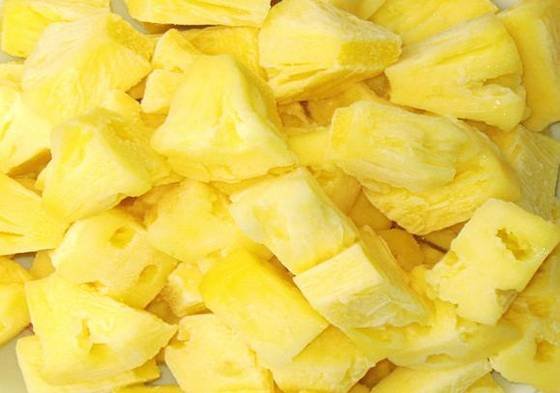 Ананас замороженный кубик мелкий. Продукт не содержит подсластителей, ароматизаторов и консервантов.