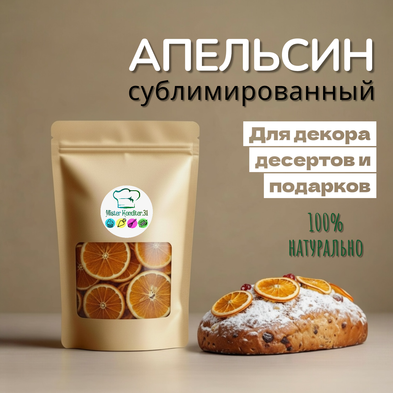 Сублимированные слайсы апельсина используется в качестве добавки и декора в кондитерских изделиях.