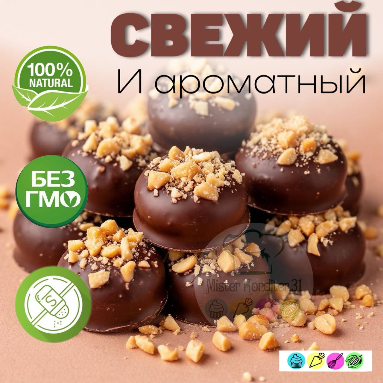 Наш арахис тщательно отобран, обжарен до золотистого цвета и аккуратно измельчён. Он отлично подходит для посыпки тортов, капкейков, пирожных и рулетов, а также для приготовления карамели, пралине и других кондитерских изделий.