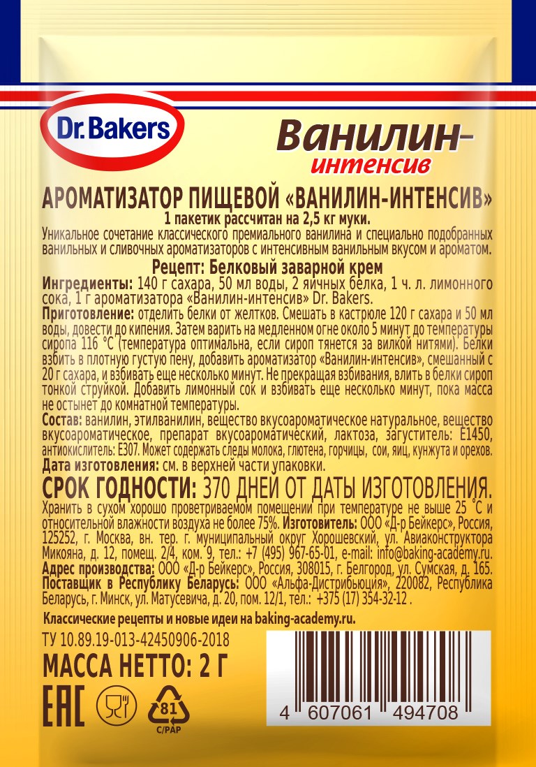 Яркое сочетание классического высококачественного ванилина со специально подобранными ванильными и сливочными ароматизаторами. Обладает интенсивным вкусом и ароматом. С его помощью можно придать яркий ванильный аромат вашей выпечке. 1 пакетик рассчитан на 2,5кг муки.