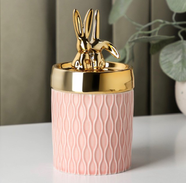Керамическая банка с зайцами на крышке подходит для сыпучих ингредиентов, конфет и других продуктов, украсит ваш интерьер, станет Прекрасным аксессуаром для фудфотографии.