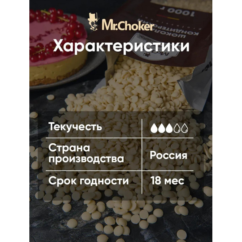Содержание какао-масла в белом составляет не менее 27%. Натуральный кондитерский шоколад в каплях бренда Мистер Чо — идеальный ингредиент для создания вкусной выпечки и сладких десертов.