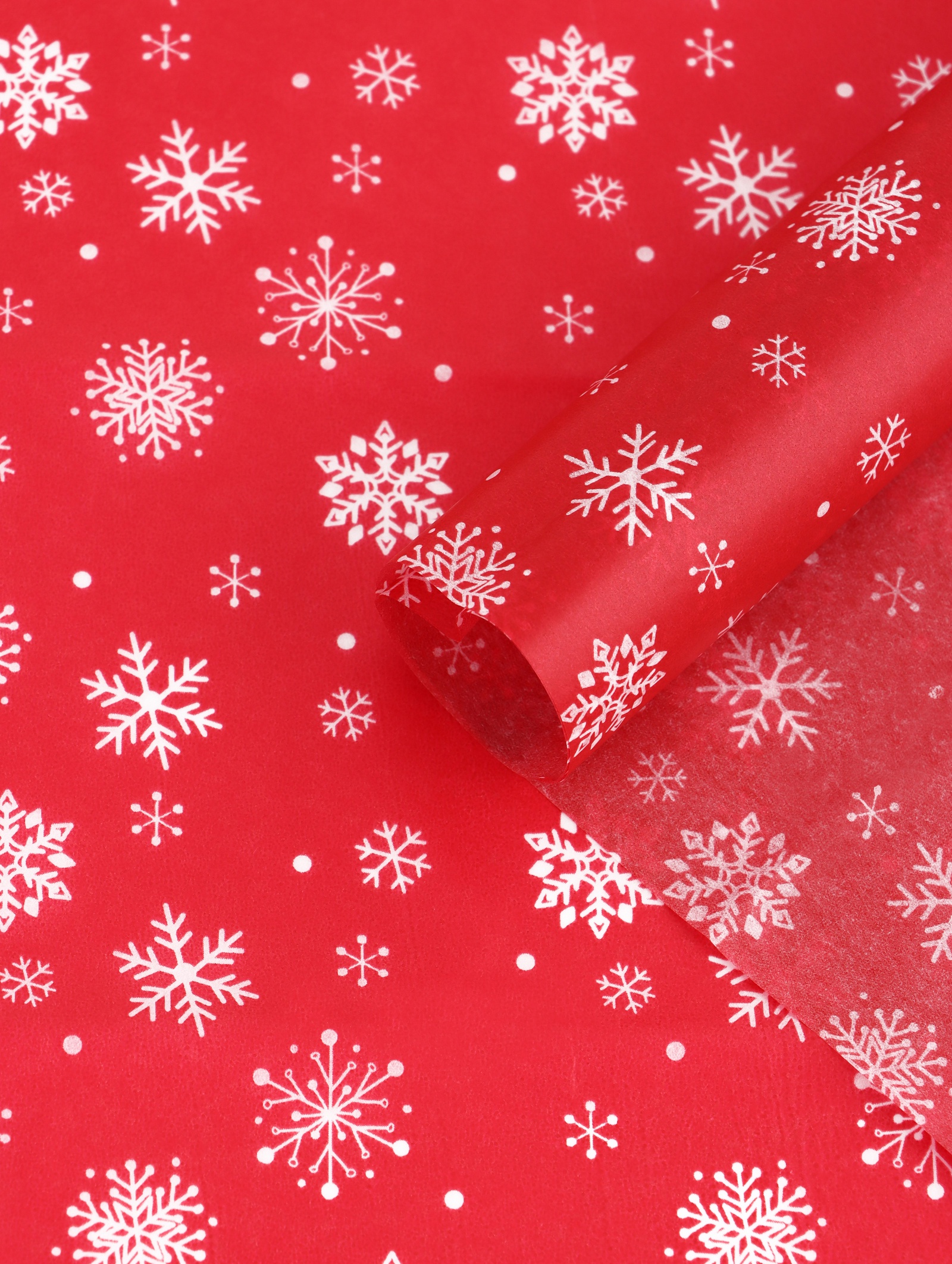 Готовое праздничное решение: Эта бумага не требует дополнительного декора. Ее можно комбинировать с белым или золотым бантом для создания нарядного акцента. Красная бумага тишью со снежинками — выбор для тех, кто ценит классическую эстетику Нового года и создает атмосферу праздника в деталях.