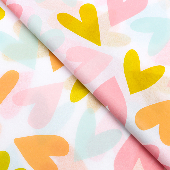 Используется бумага тишью для заполнения пустого пространства в подарочных коробках, пакетах или сумках, придавая упаковке дополнительный объем и пышность. Бумага слегка мнется при вкладывании в упаковку, не теряя при этом своей презентабельности.