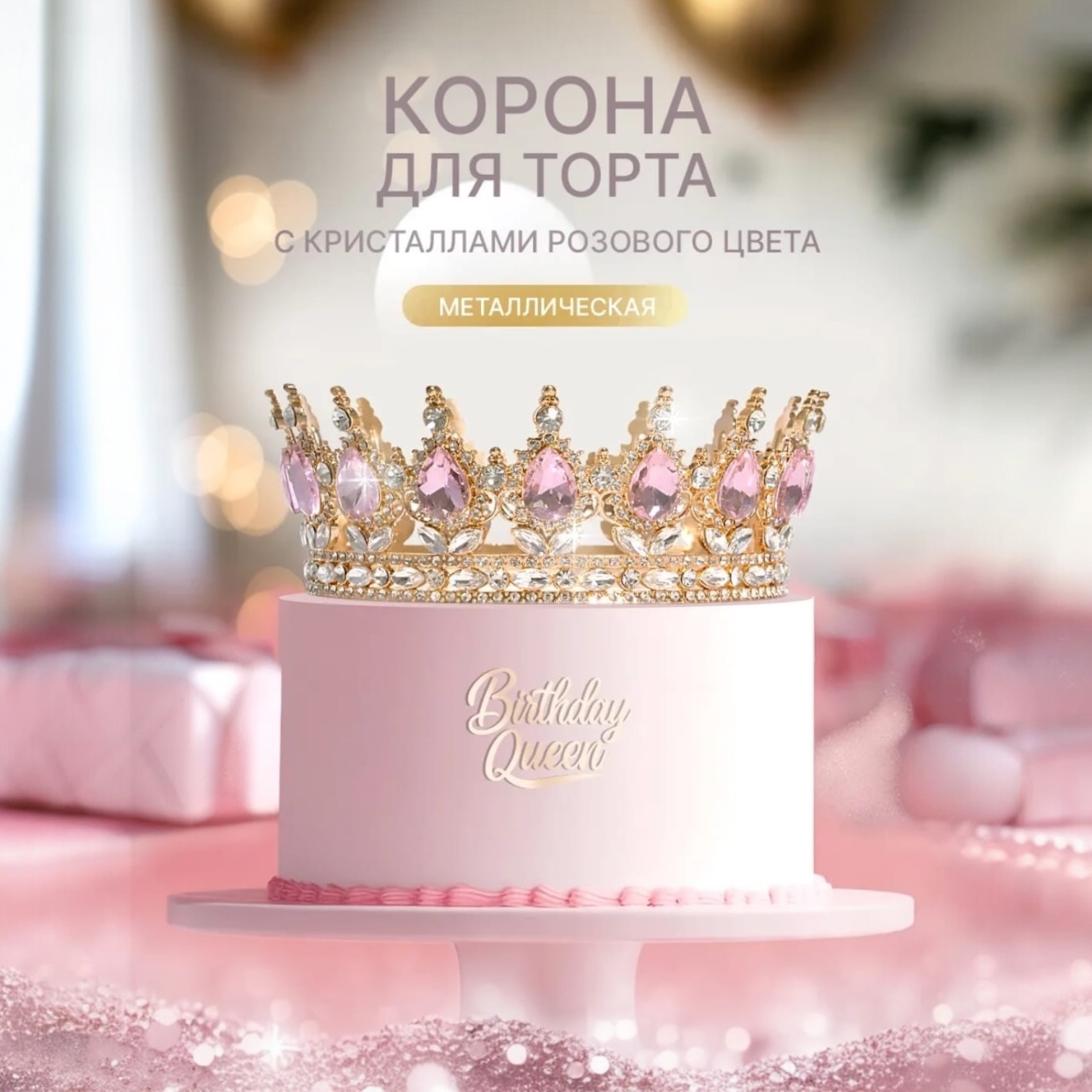 Изысканная корона для торта станет идеальным украшением любого праздника. Этот декоративный топпер подчеркнет атмосферу торжества, будь то день рождения, девичник, свадьба или выпускной. Элегантный аксессуар выполнен в виде диадемы с кристаллами, создавая изысканный декор для праздничного стола и фотосессий. Подчеркните важность момента: диадемой «queen» , которая символизирует женственность и грацию, делая торт настоящим центром внимания. Такой предмет подойдет как невесте на свадебное торжество, так и девушке на девичнике или подружкам невесты. Украшение будет уместным подарком для женщины или девушки на праздник и порадует своим утонченным дизайном. Топпер легко установить, он подходит для взрослых мероприятий благодаря стильному виду и качественному изготовлению. Королевский акцент с декоративными элементами добавит изюминку вашему тортику, превращая его в произведение искусства.