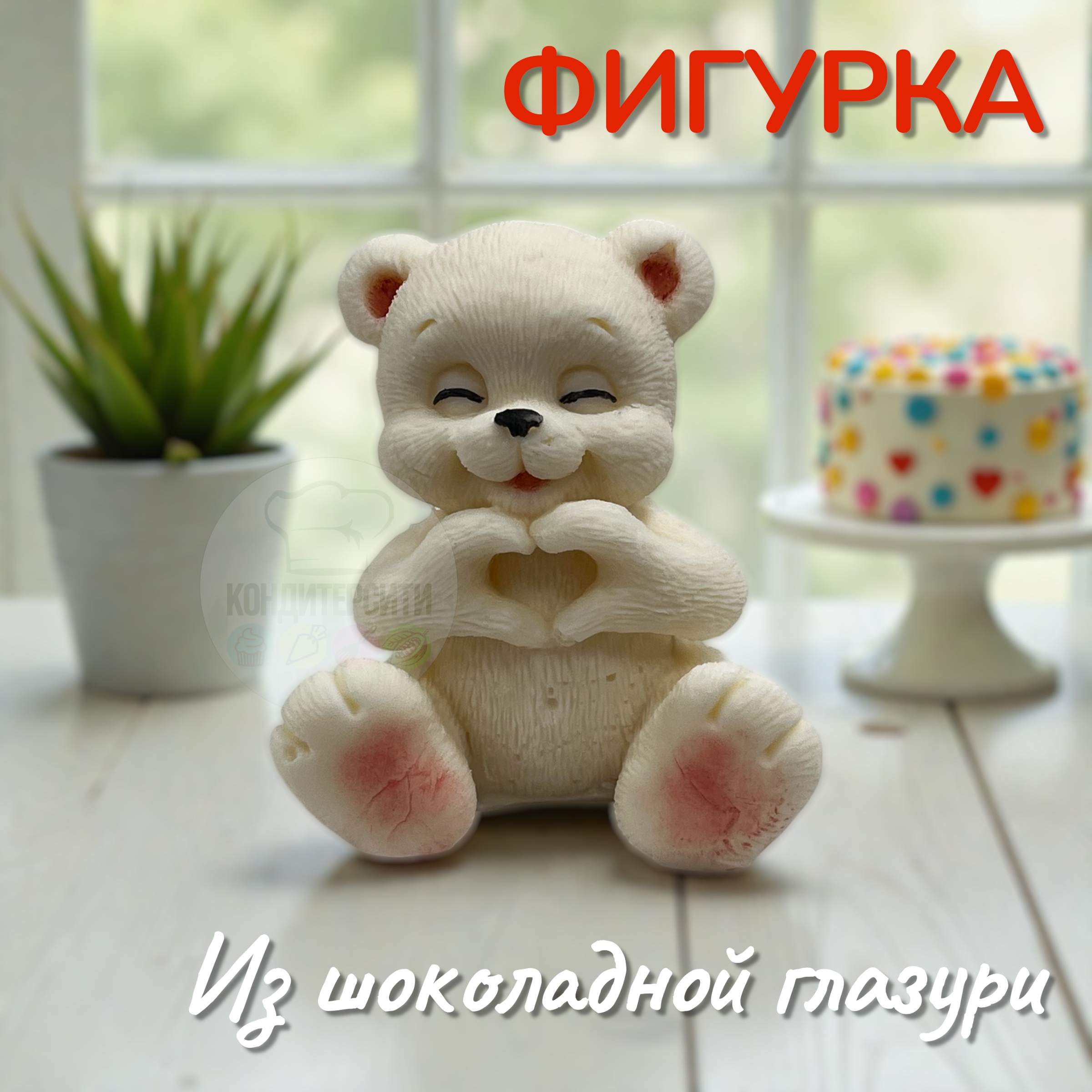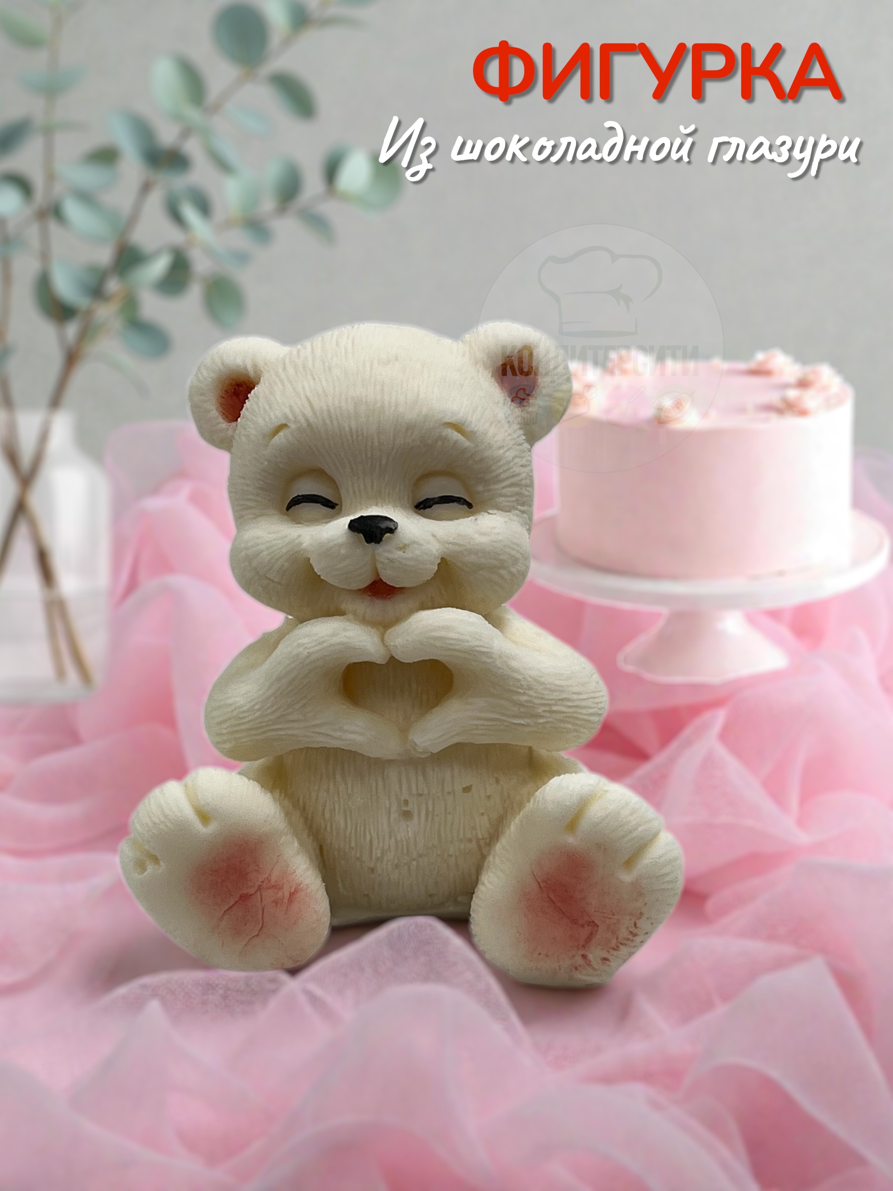Готовая фигурка из шоколадной глазури в форме Мишка Лайкер с декором. Шоколадное украшение объемное. Продается по 1 шт.