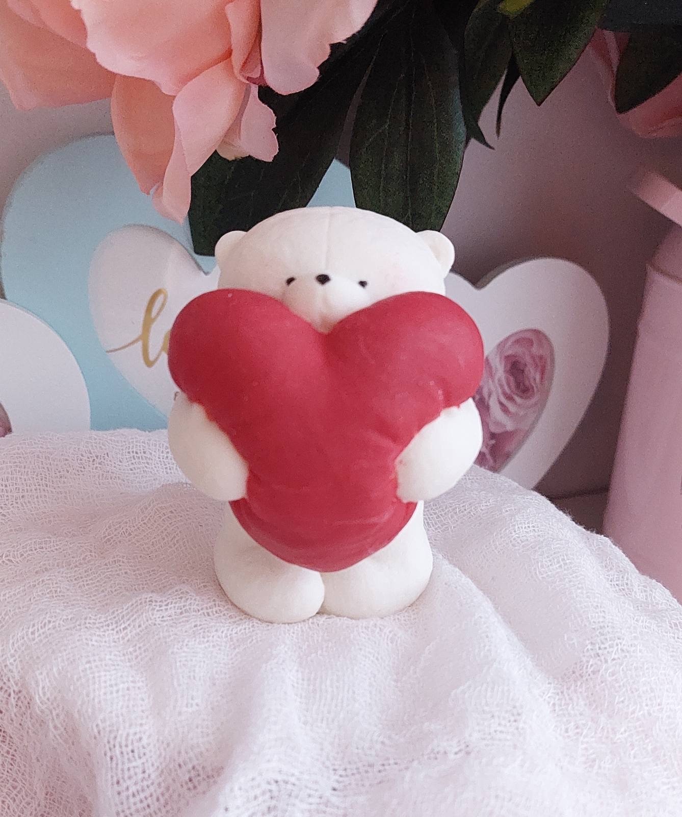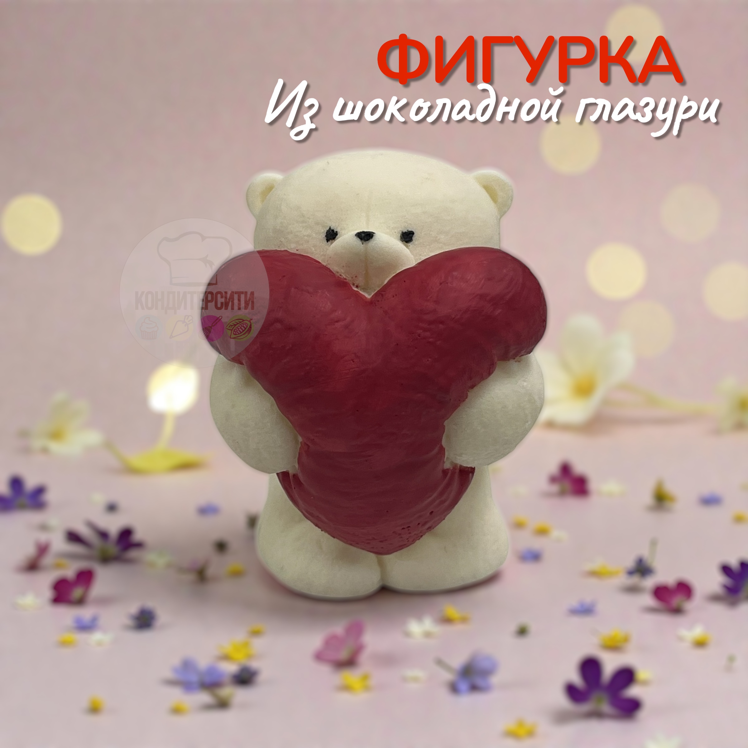 Шоколадная фигурка из глазури. Украшение торта. Сладкий подарок «Мишка пухляш с красным сердцем».