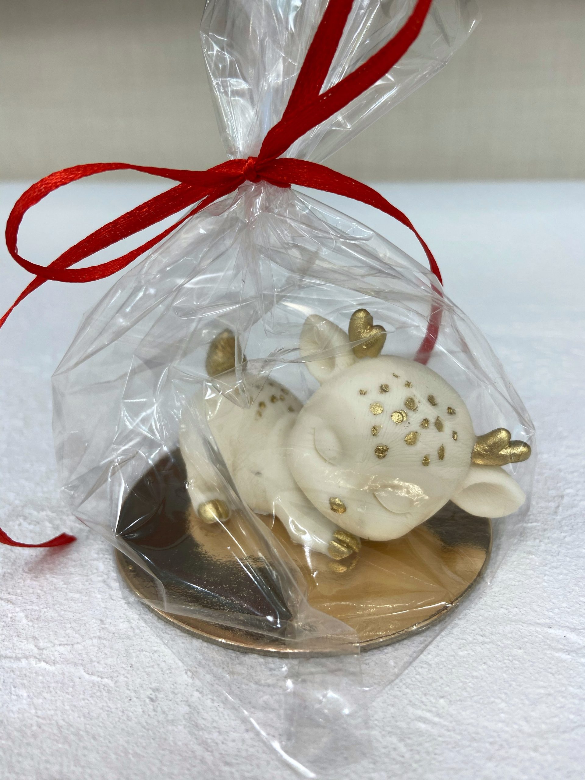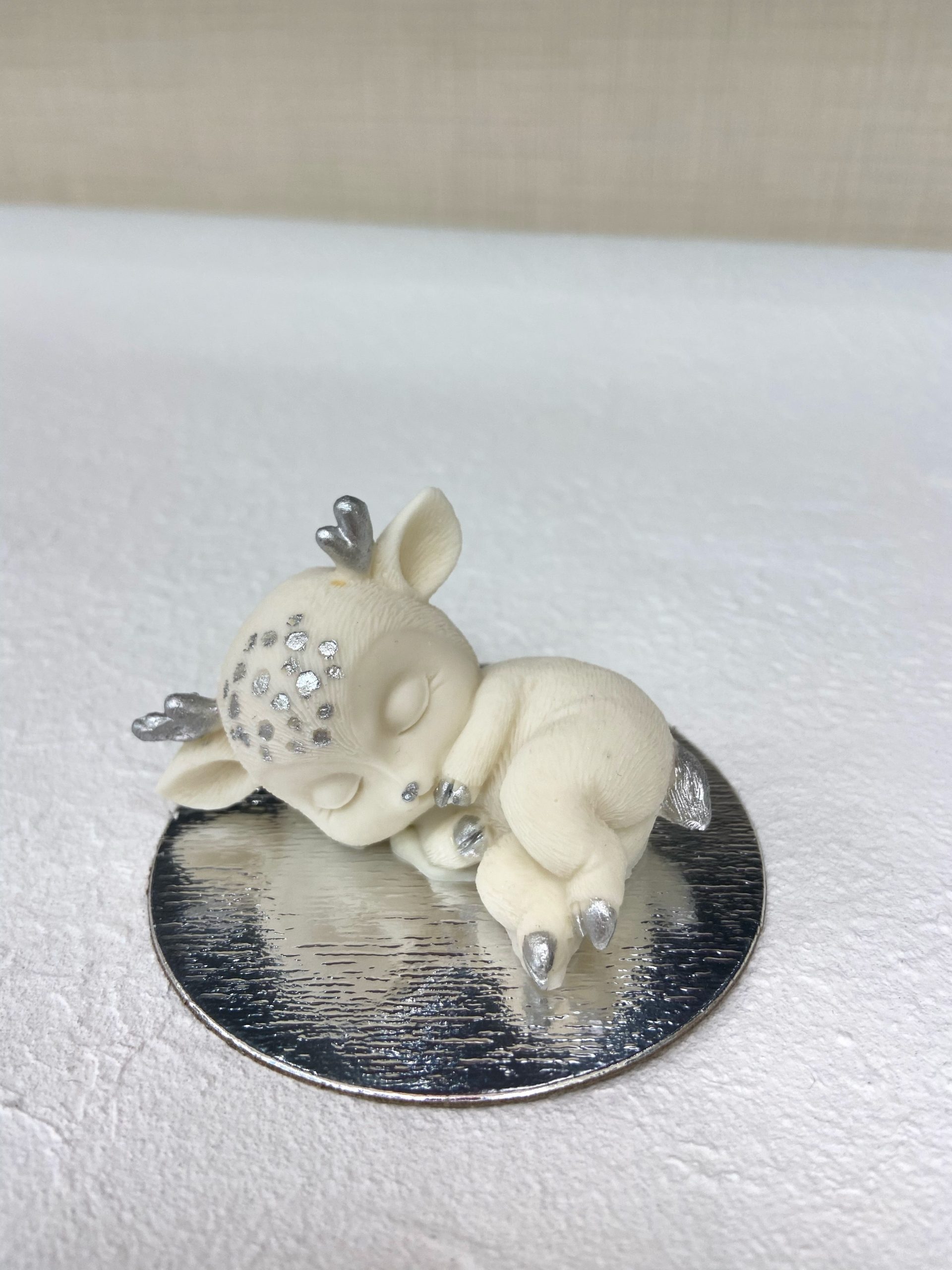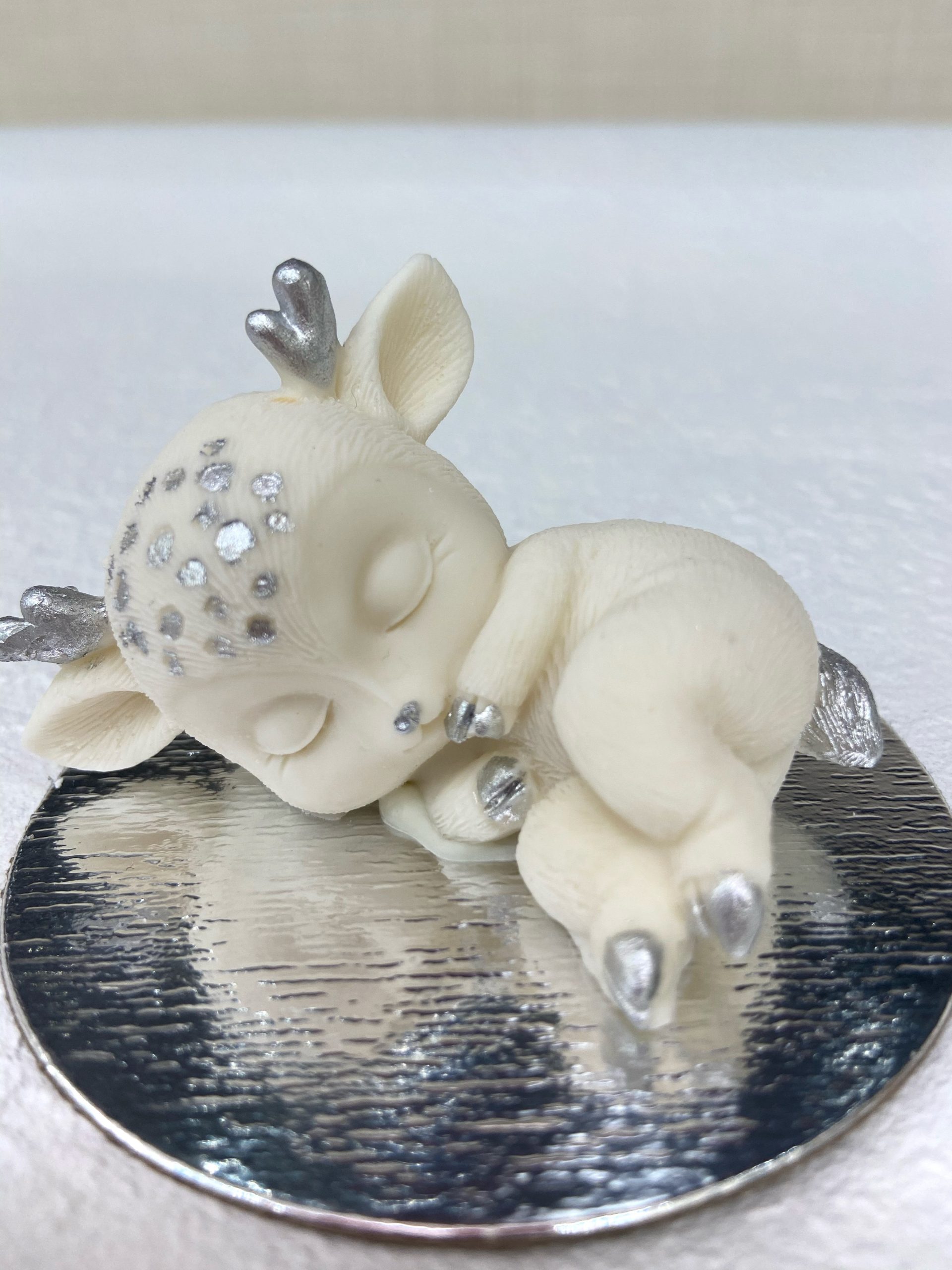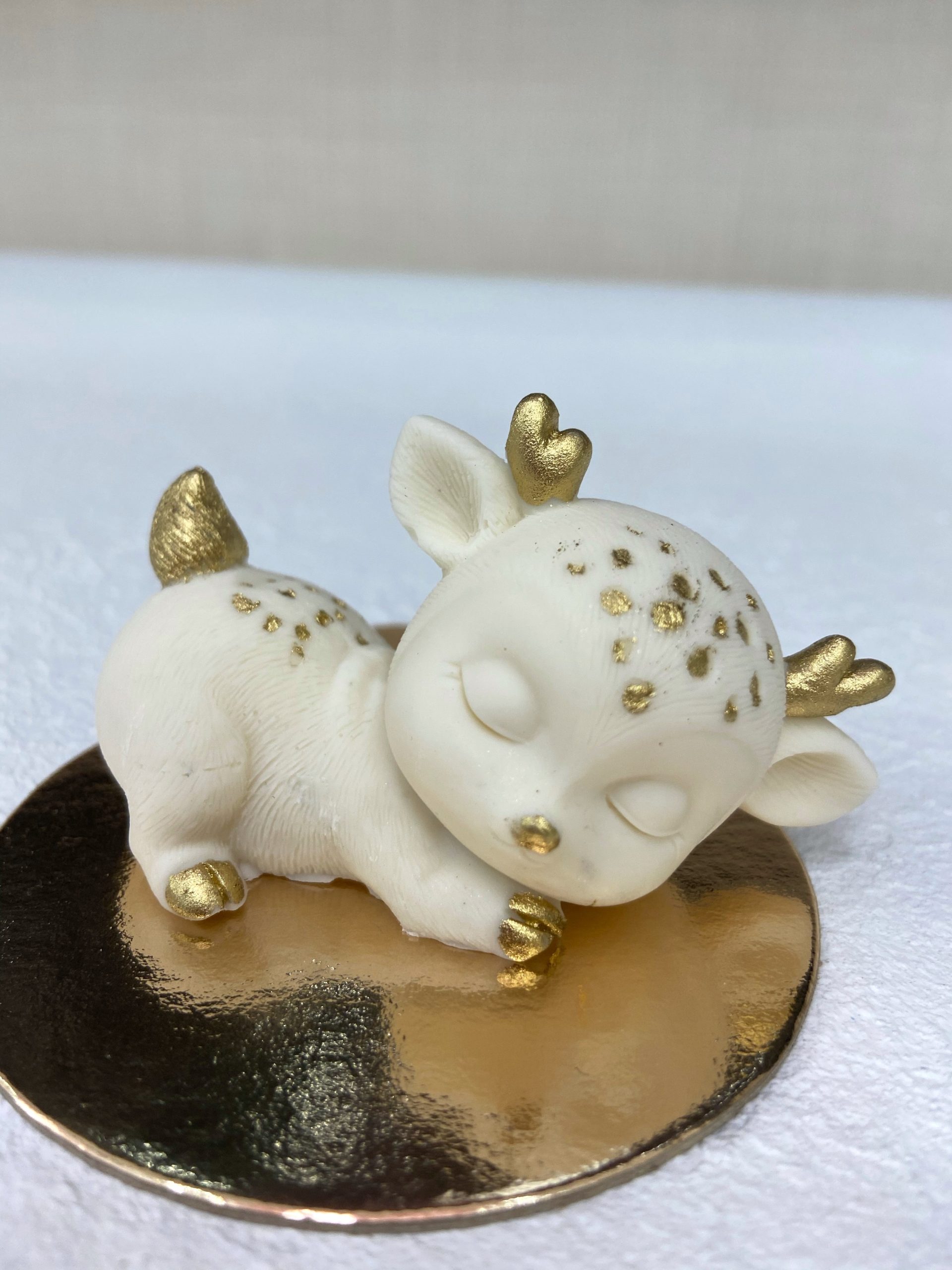 Готовая фигурка из шоколадной глазури в форме Олененка на животике с декором. Шоколадное украшение объемное. Продается по 1 шт.