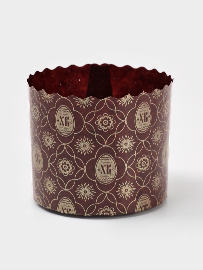 Бумажная форма для выпечки кулича имеет размеры 70х60 мм объемом 100 грамм.