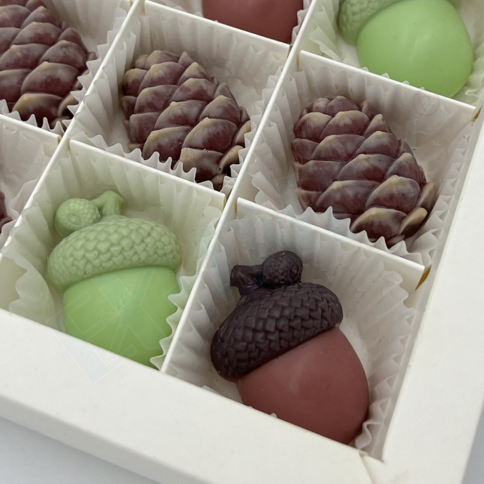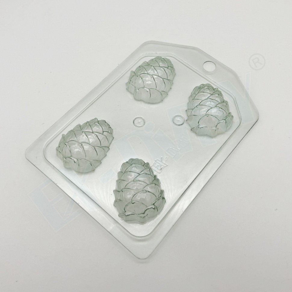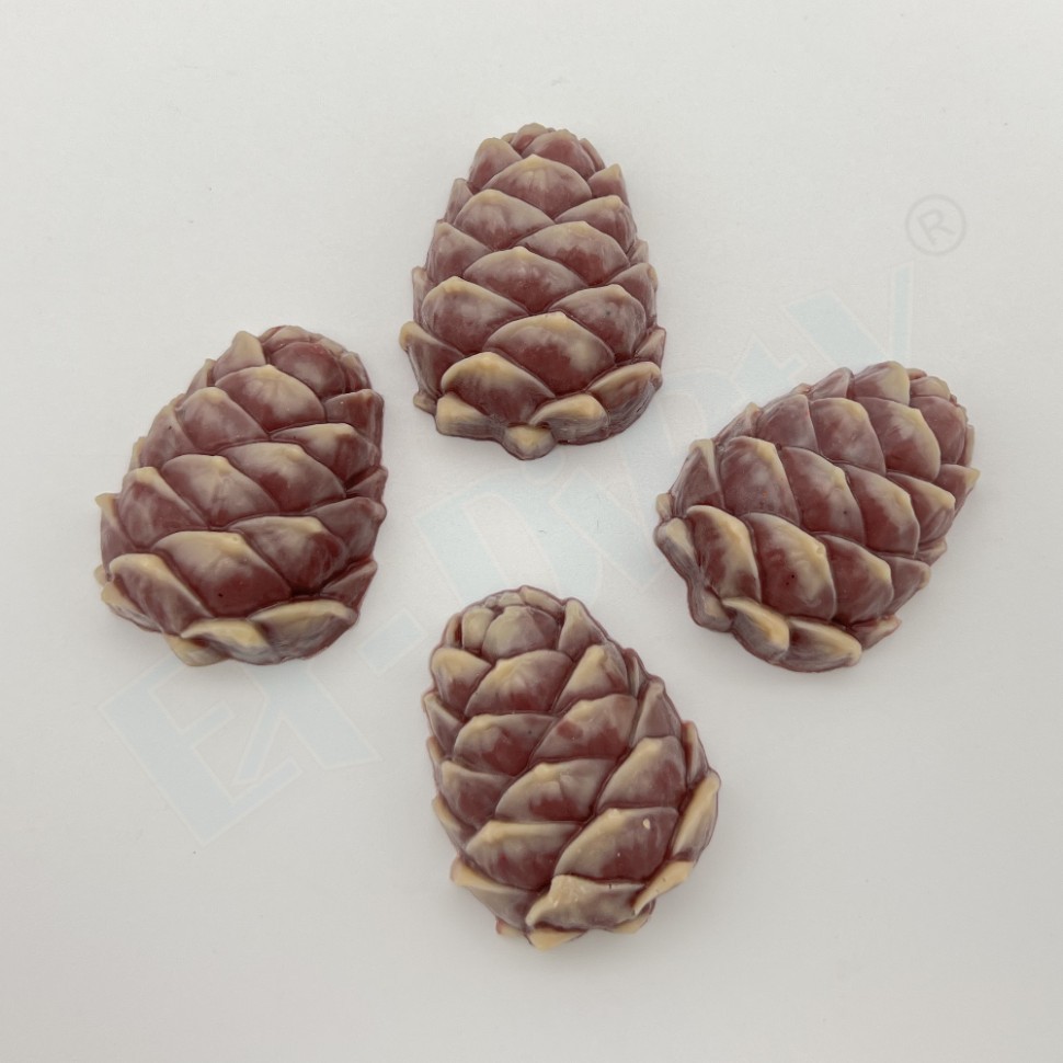 Формочка Шишка кедровая мини. Температурный режим использования: +5 — +65. Форма подходит для контакта с негорячими пищевыми продуктами (шоколад, мастика). Форма применяется для изготовления: шоколадных и мастичных конфет, фигур для украшения десертов, мыла, бомбочек для ванны, фигурок для занятий и игр из гипса, полимерной глины.