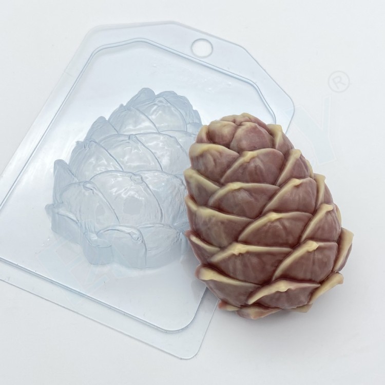 Формочка Шишка кедровая. Температурный режим использования: +5 — +65. Форма подходит для контакта с негорячими пищевыми продуктами (шоколад, мастика). Форма применяется для изготовления: шоколадных и мастичных конфет, фигур для украшения десертов, мыла, бомбочек для ванны, фигурок для занятий и игр из гипса, полимерной глины.