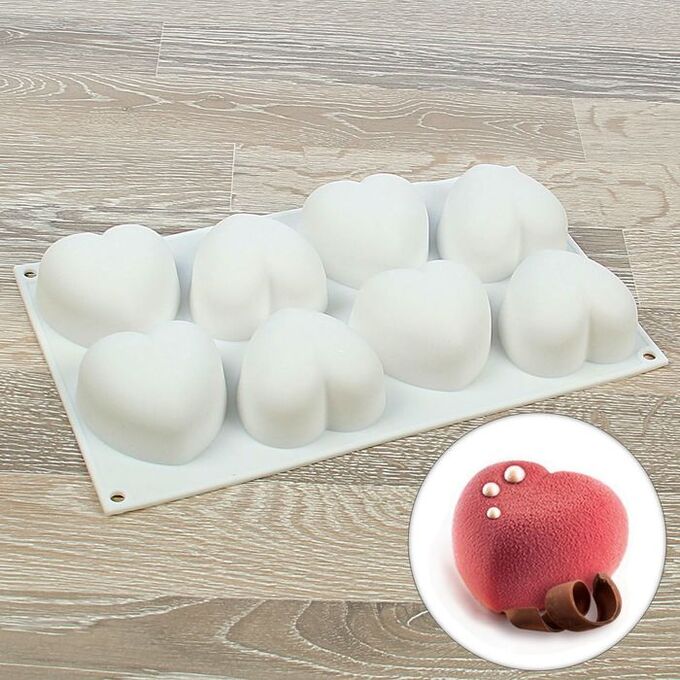 Силиконовый молд Сердце — удобная форма, которая сделана из пищевого силикона. Полностью безопасна для создания изделий из шоколада, мыла, смолы, гипса, глины, парафина. Она предназначена для шоколада, шоколадных изделий, муссовых тортов, десертов, глазури, мастики, карамели, теста, пирожных, эпоксидной смолы. Молд для для муссовых пирожных хранить в сухом виде, вдали от солнечных лучей. Он устойчив к температуре от -40 до + 230. Можно сделать идеальный подарок на 14 февраля (день святого Валентина, день влюбленных), 23 февраля, пасху, 8 марта , на новый год, день рождения и т.д.