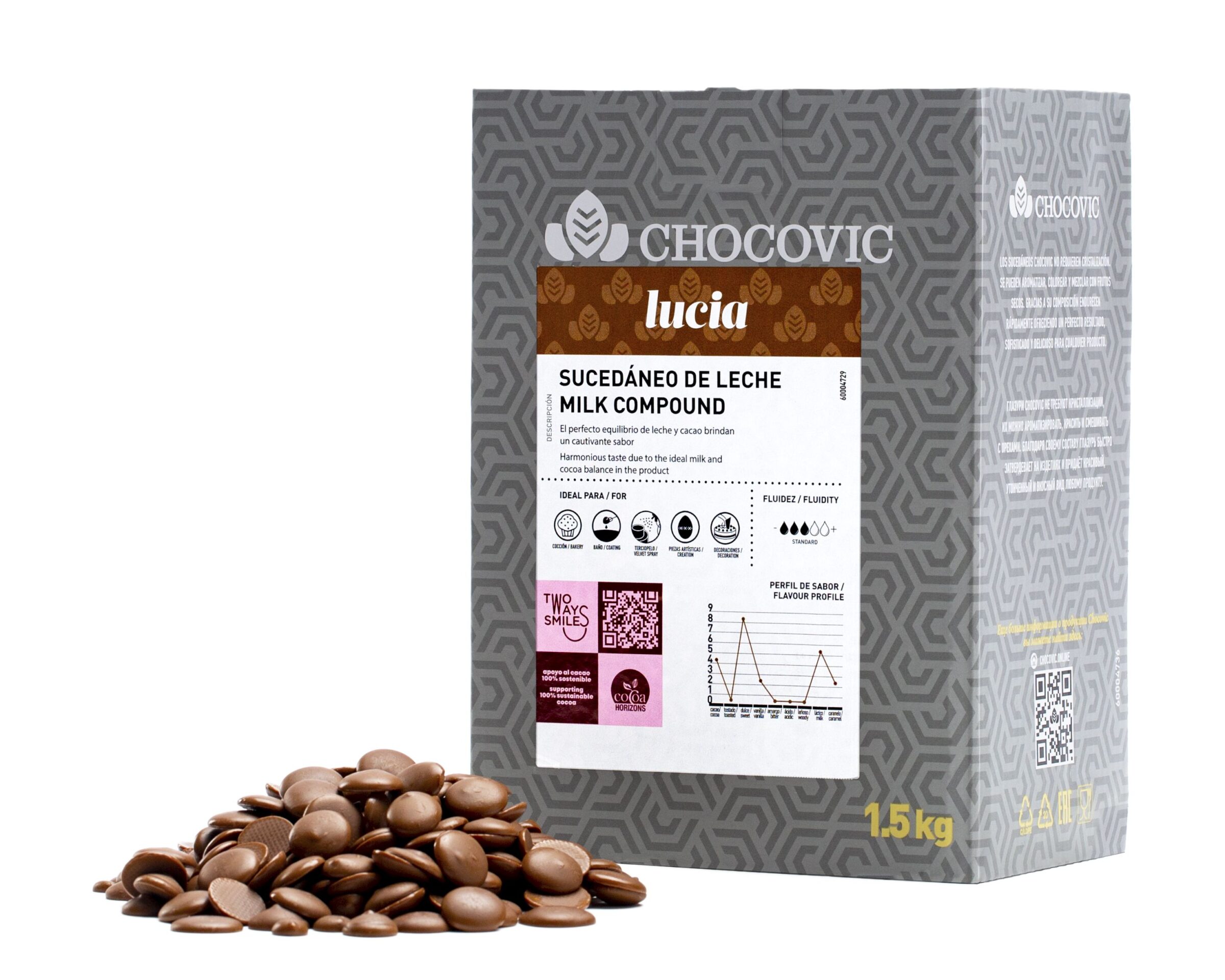 Молочная глазурь имеет гармоничный вкус благодаря идеальному содержанию молока и какао в продукте. Глазури Chocovic не требуют темперирования, их можно ароматизировать, красить и смешивать с орехами. Благодаря своему составу глазурь быстро затвердевает на изделиях и придает красивый, утонченный и вкусный вид любому продукту.