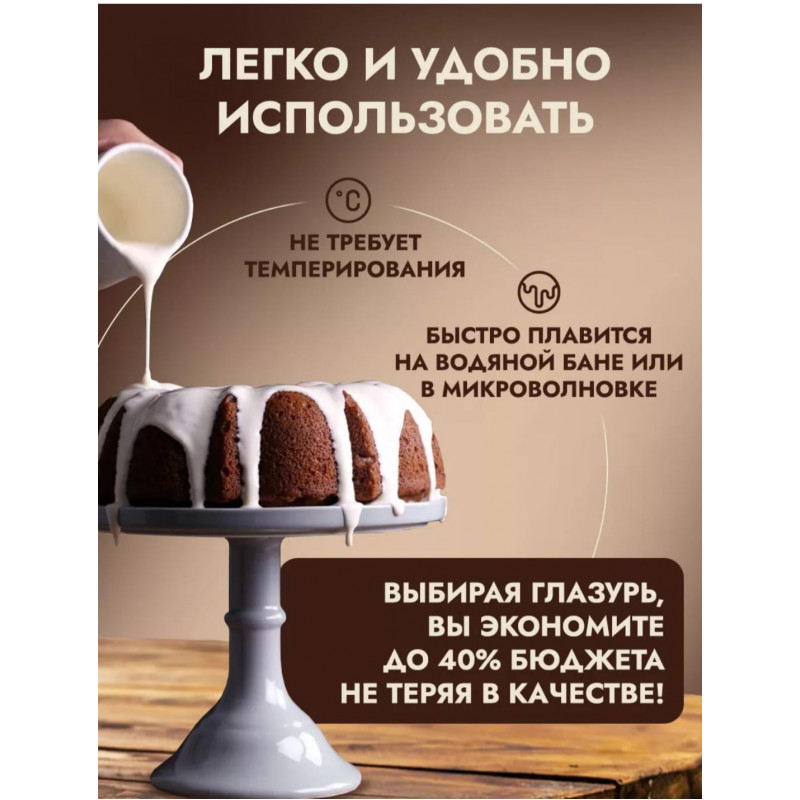 Глазурь кондитерская для выпечки отлично подходит для плавления, для фонтанов и фондю, приготовления декора и украшений для торта, пасхальных куличей, глазирования пирожных и других сладостей. Белая глазурь 1000 гр идеально подходит для создания великолепных шедевров и декора. Приготовление тортов и выпечки станет настоящим удовольствием с использованием этой кондитерской смеси.
