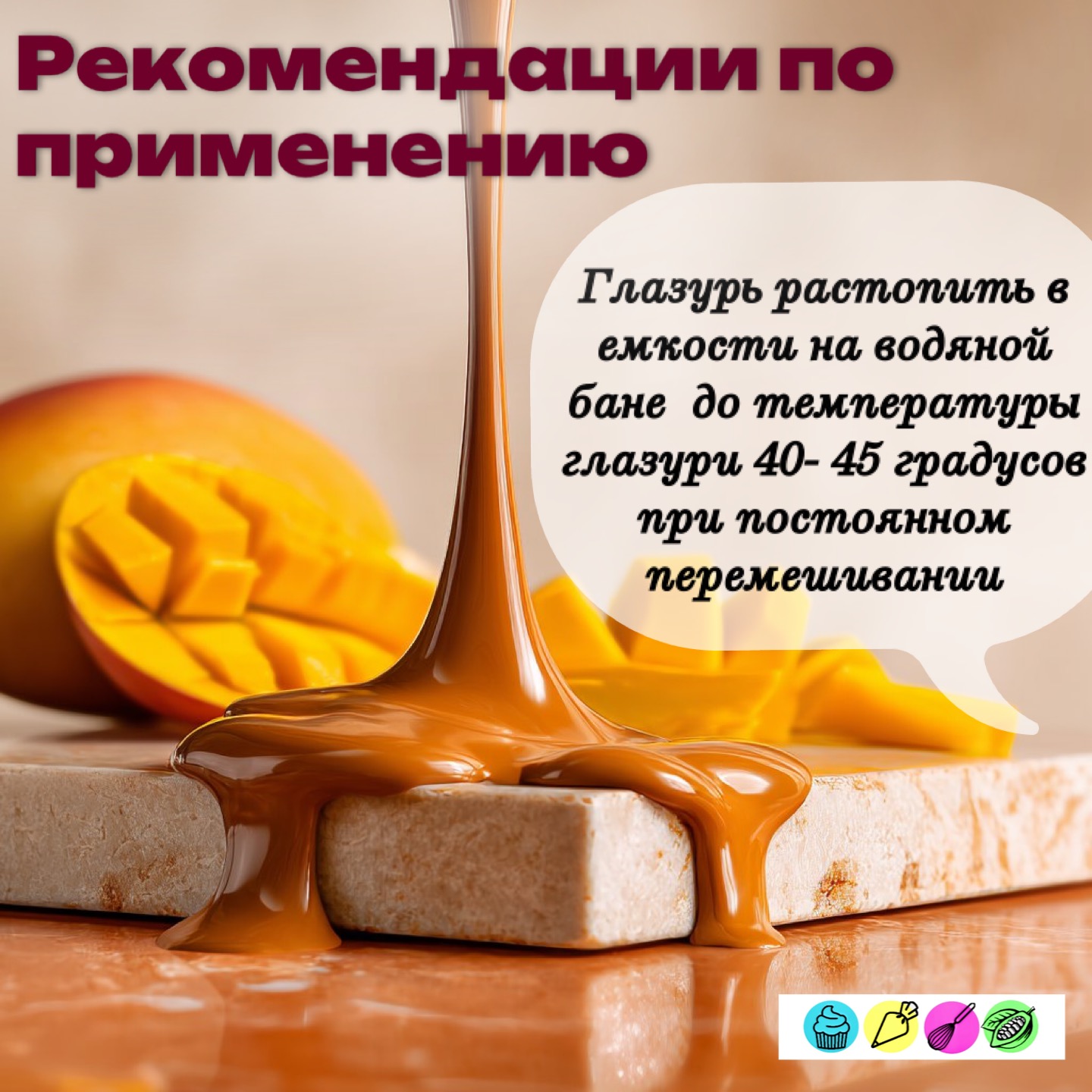 Шоколадная кондитерская глазурь Шокомилк подходит для глазирования и моделирования. Прекрасно отливается в формы и используется с переводными картинками. Готовые изделия имеют прекрасный глянец, не расплываются при хранении. Глазурь быстро плавится, не требует темперирования и очень удобна в работе. Ее необходимо просто растопить на водяной бане или импульсами в микроволновой печи — и сразу приступать к работе. С помощью кондитерской глазурь вы сможете отливать шоколадные фигурки различных форм, глазировать кондитерские изделия и украшать торты и пирожные. Глазурь замечательно подойдет для клубники в шоколаде, кейк-попсов. Глазурь со вкусом манго имеет соответствующий вкус, аромат и цвет.