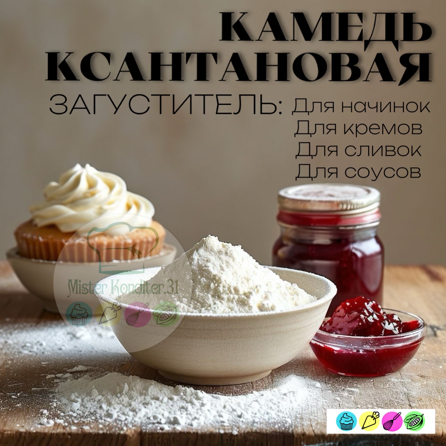 Для кремов, кисломолочных изделий, соусов и т.д.: она придает плотную консистенцию жидким массам.