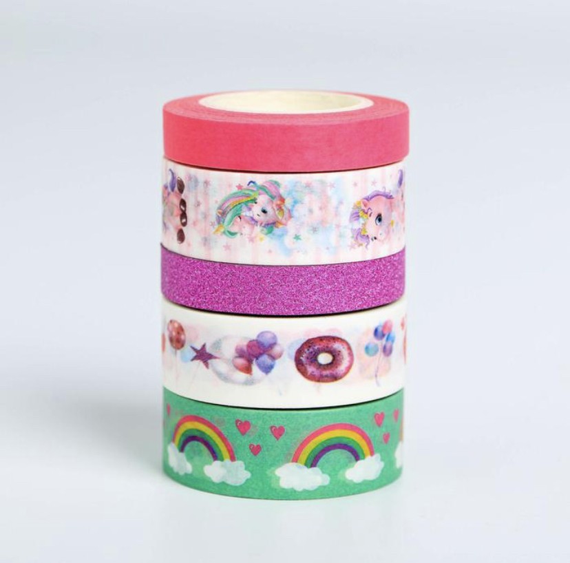 Декоративная клейкая лента (бентолента) — отличный способ добавить яркие и оригинальные акценты в ваши проекты. В наборе представлены 5 рулонов ленты с разными дизайнами.
