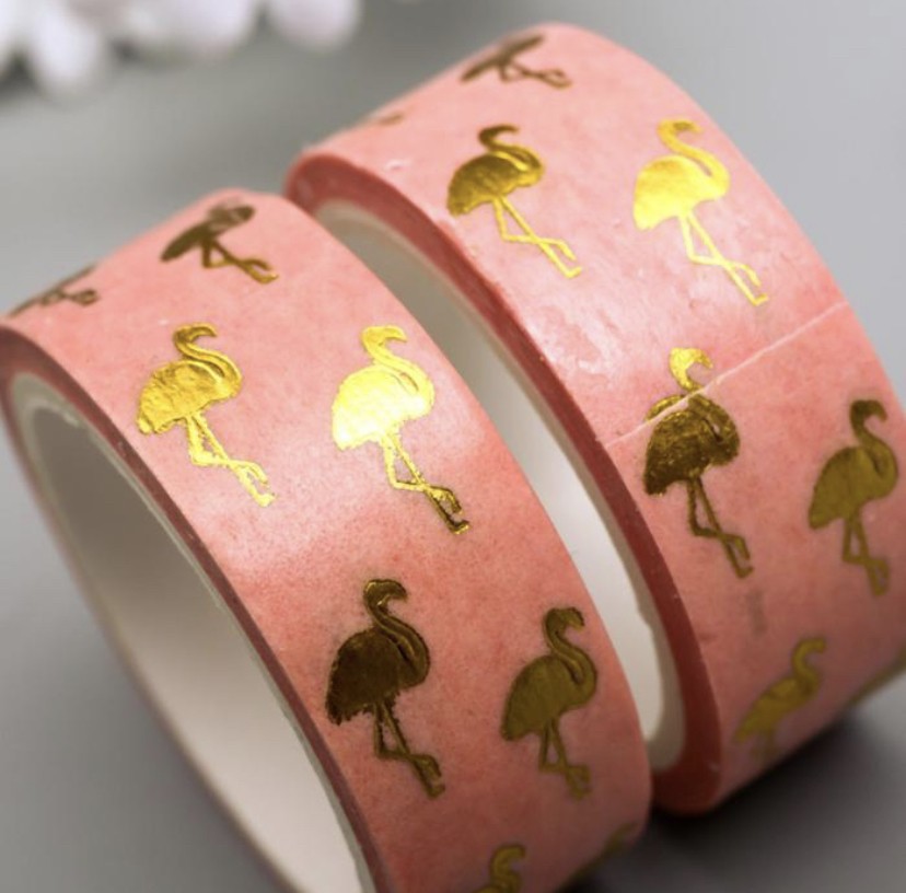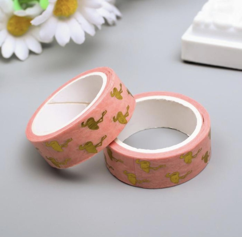Клейкая лента бумажная декоративная (бентолента), «Золотой фламинго»
