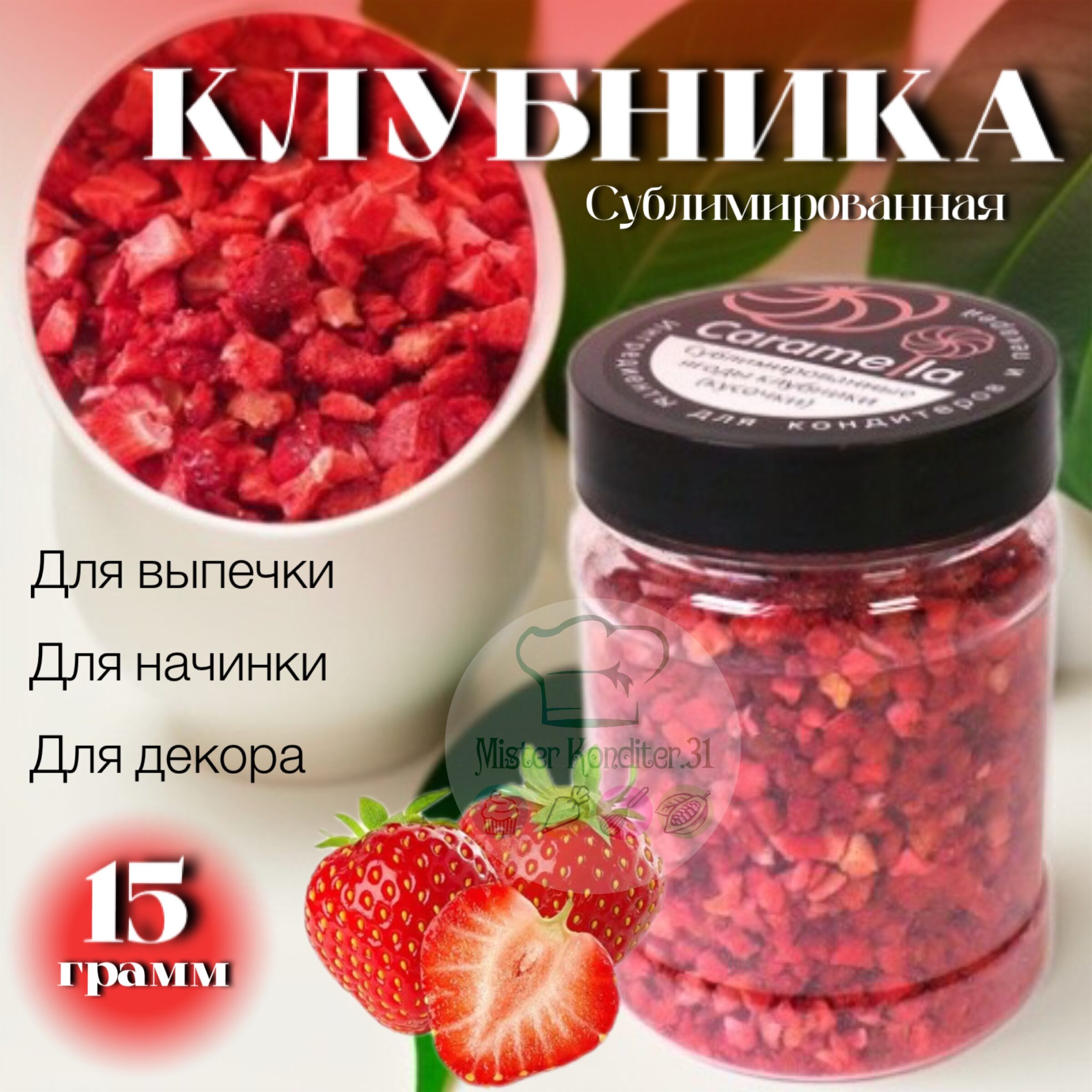 Сублимированные ягоды очень популярны в кондитерском деле. Порошки из них добавляют для дополнительного вкуса, цвета и запаха в тесто, или в крем для начинки тортов, эклеров и других десертов. Кусочки сублиматов используют для декора шоколадных плиток, а также начинки для конфет ручной работы, в качестве посыпки для сладостей или наполнителя для йогуртов и творожков.
