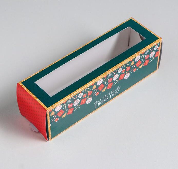 Коробка картонная с прозрачным окном для упаковки кондитерских изделий.
