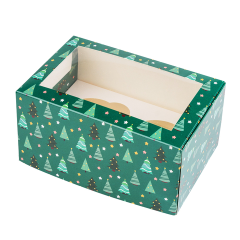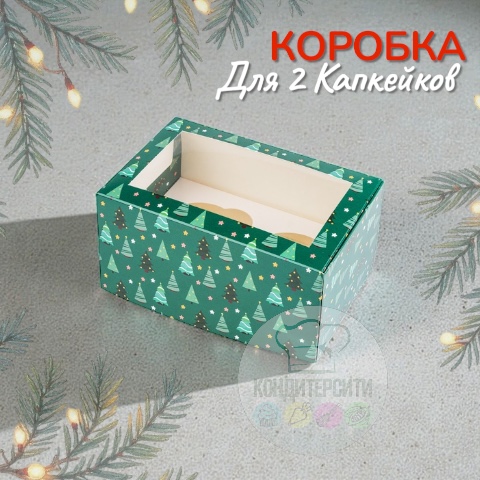 Коробка картонная с окном для капкейков с разделителями на 2 ячейки.