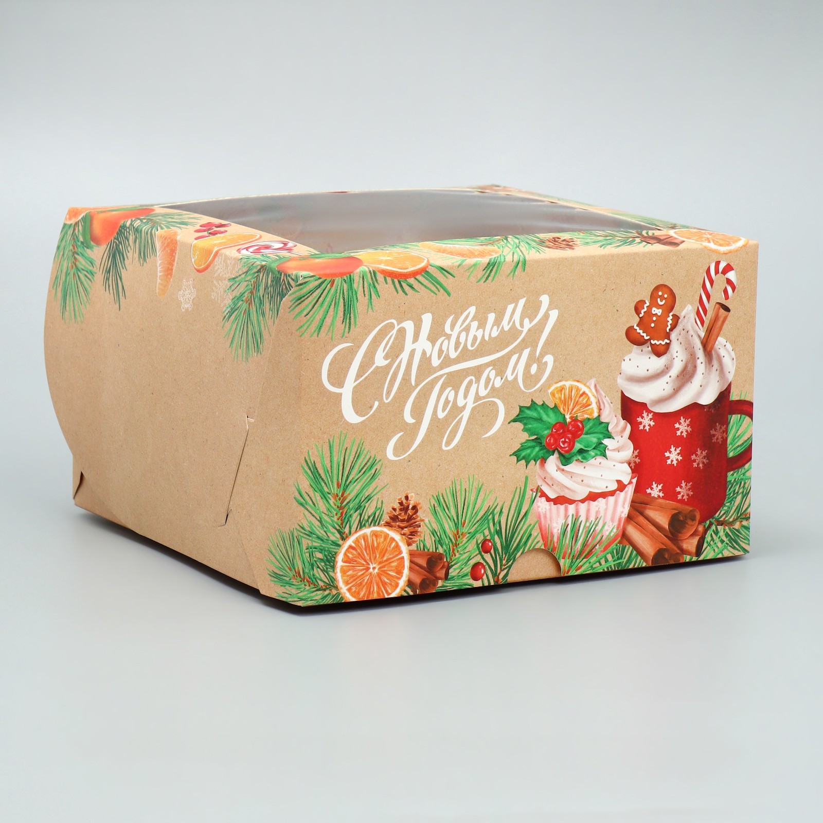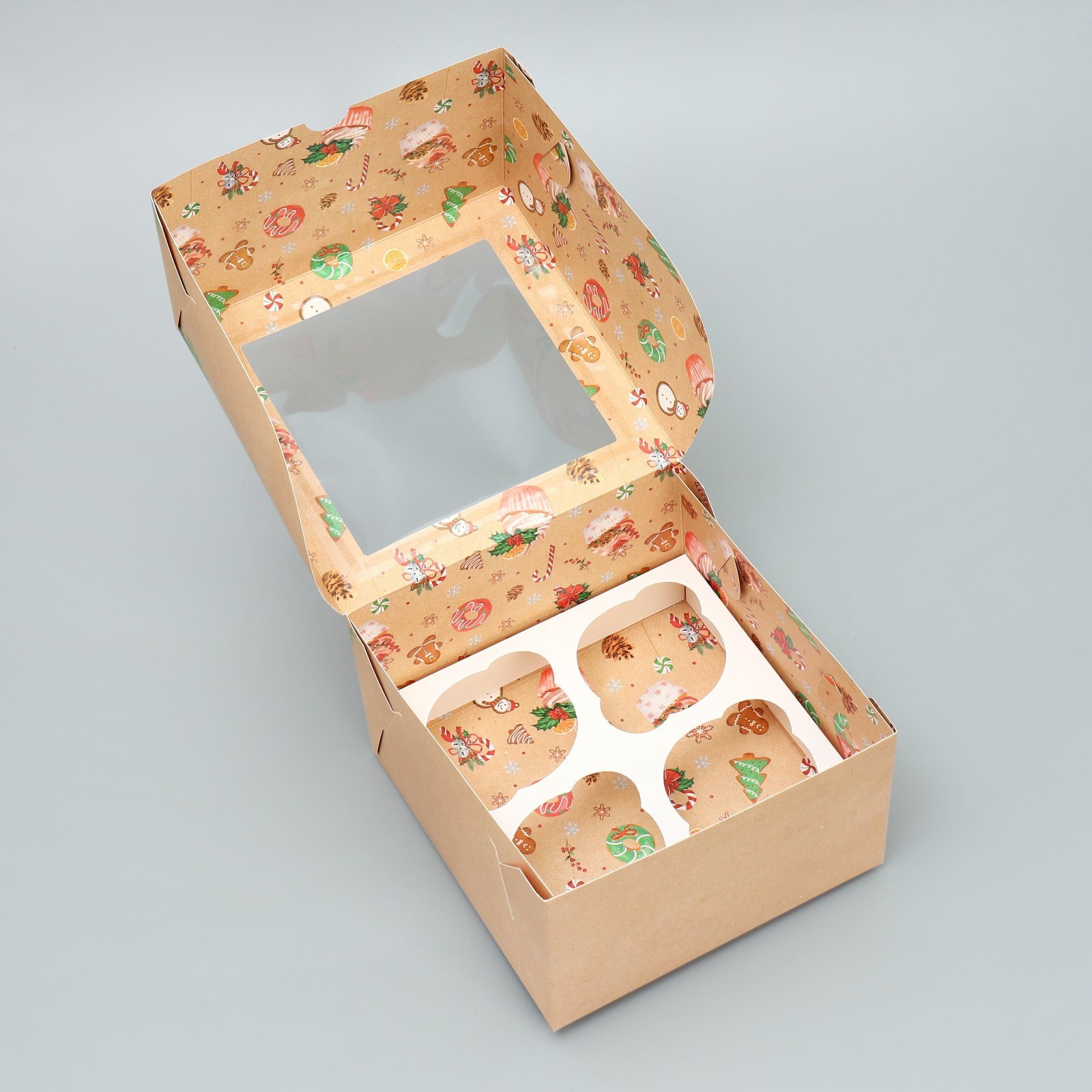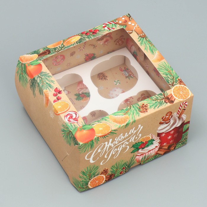 Упаковка на 4 капкейка с окном «С Новым годом!». Коробка подарочная универсальная предназначена для: капкейков, кексов, пирожных и т. д. Изготовлена из плотного картона. Прекрасно подойдет для оформления подарка, и праздничного декора. Преимущества: плотный картон; оригинальное оформление; удобно при транспортировке.