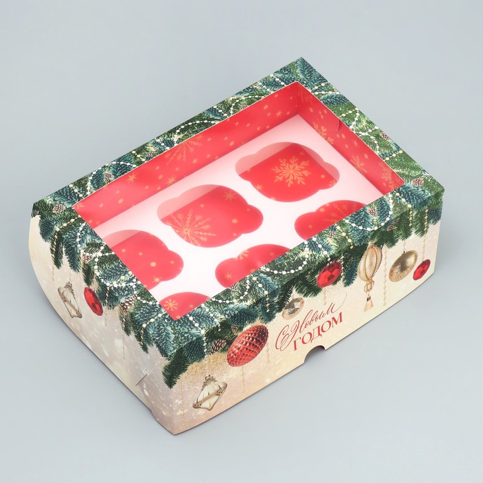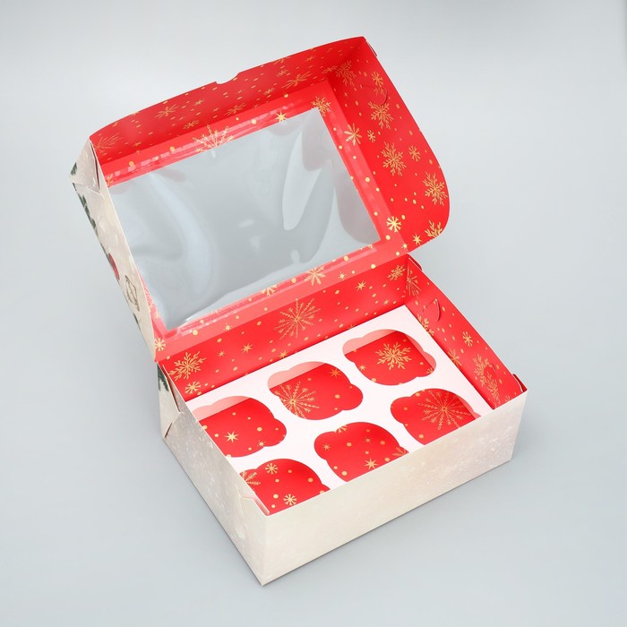 Коробка для капкейков с прозрачной крышкой, 6 ячеек с разделителем. Просто согните по всем размеченным линиям, и коробка готова!