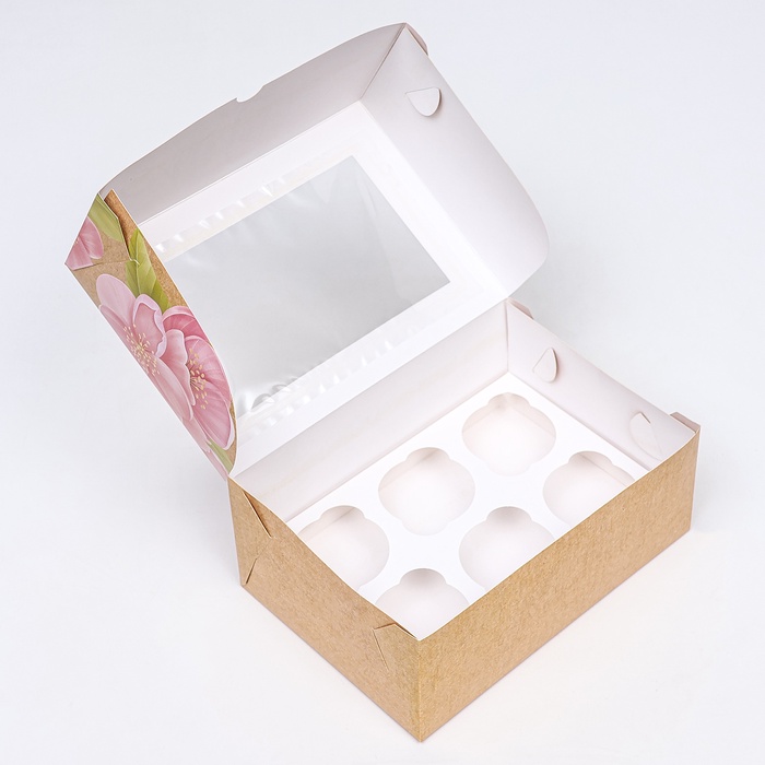 Коробка оформлена в пастельных тонах с нежным цветочным узором, отражающим весеннюю свежесть и романтическое настроение. Ее легко открыть и приятно держать в руках, что делает каждое распаковку настоящим событием.