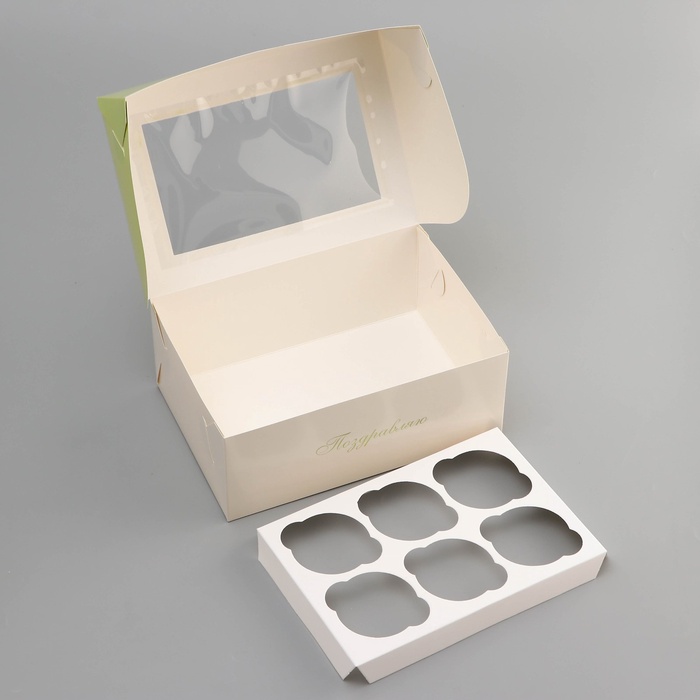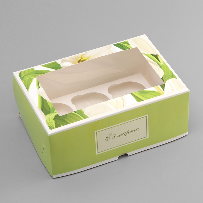 Коробка для 6 капкейков с окном, «8 марта», 25×17×10 см