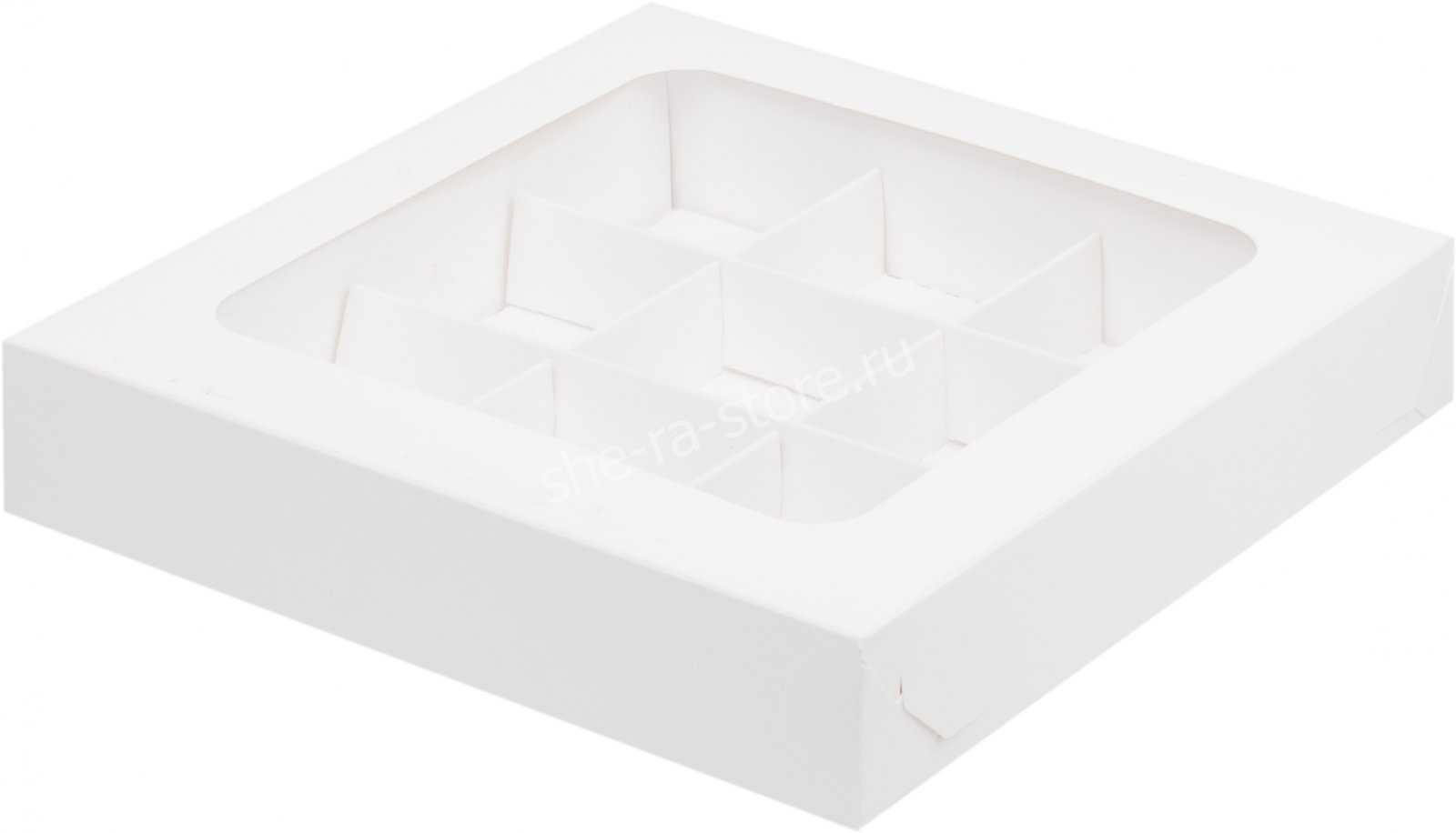 Коробка на 9 конфет — это отличный выбор для тех, кто любит сладости и заботится о их сохранности. Эта коробка выполнена из прочного картона, который обеспечивает надежную защиту конфет от повреждений и загрязнений. Прозрачная крышка из пластика позволяет видеть содержимое коробки, не открывая ее, что особенно удобно при транспортировке.