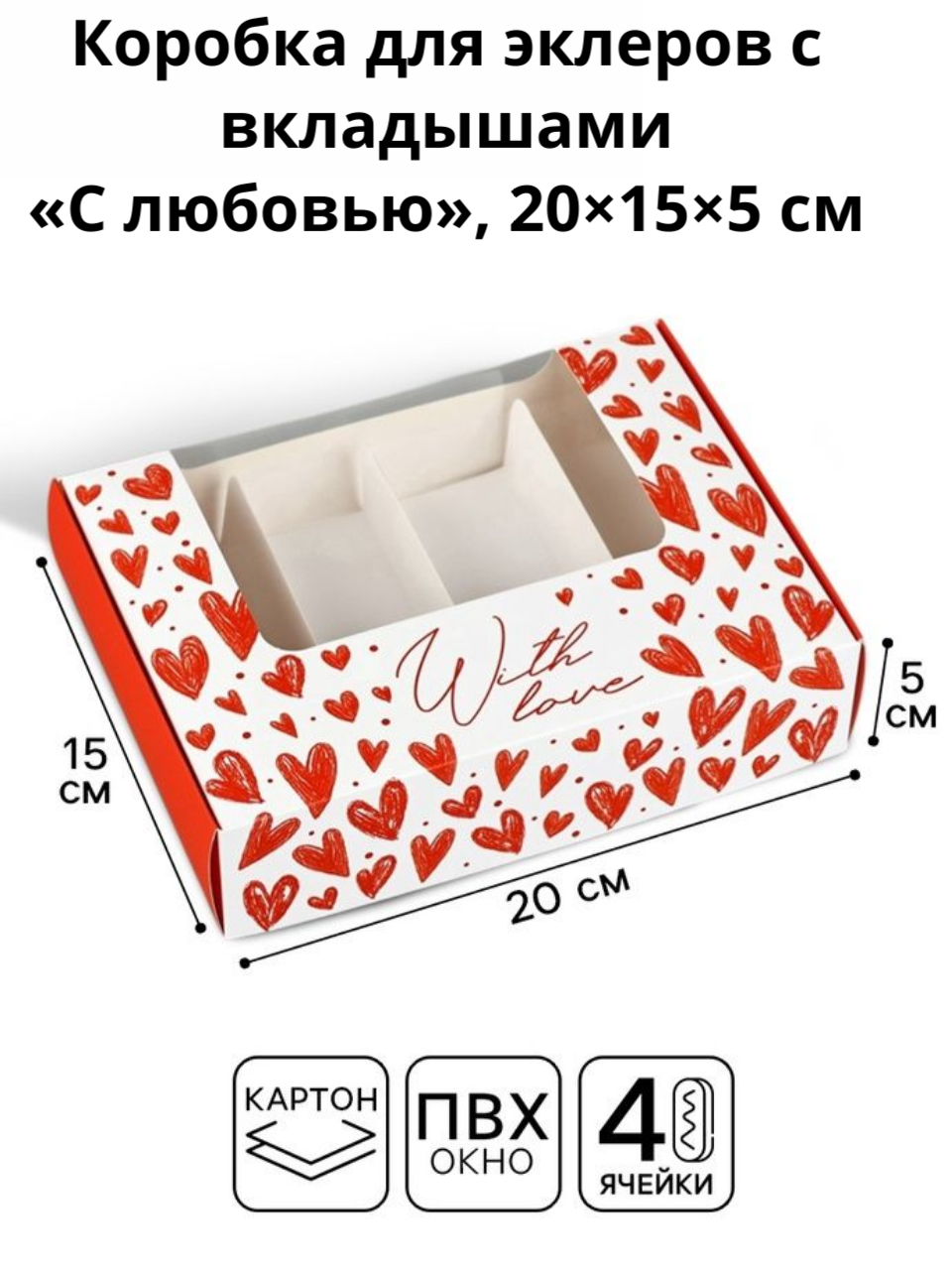 Коробку на 5 эклеров можно использовать для упаковки: пряников, печенья, конфет, зефира, безе и других кондитерских изделий. Ложемент на 5 эклеров в комплекте.