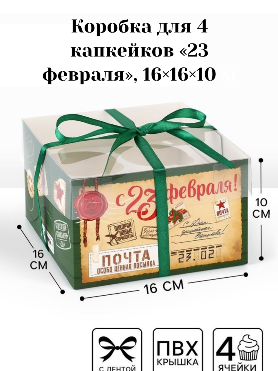 Коробка для капкейка «23 февраля», 16×16×10 см