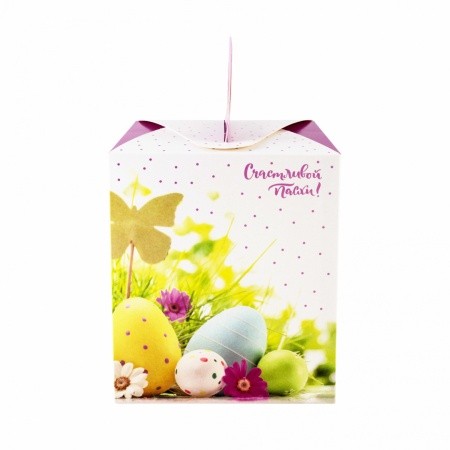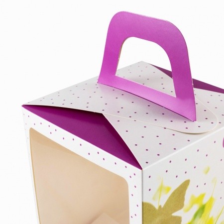 Коробка для кулича с окном. Самосборная конструкция, не требующая дополнительного скрепления. Материал: картон.