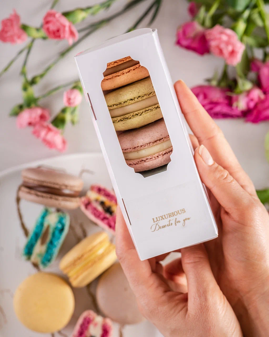 Коробка для макарон — это стильный и практичный способ упаковки и транспортировки этих вкусных французских печенек.