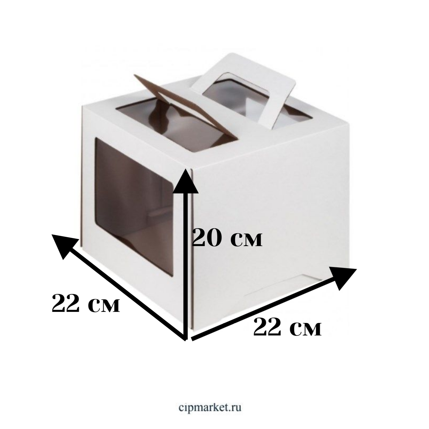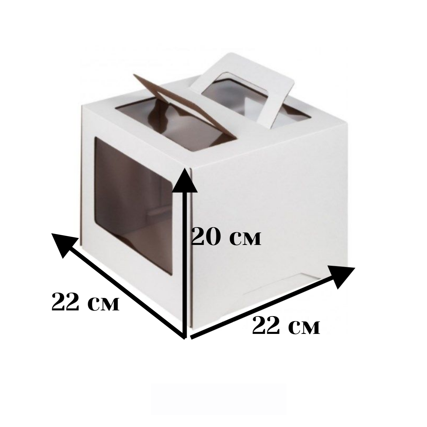 Коробка под торт 2 окна, с ручками, белая.