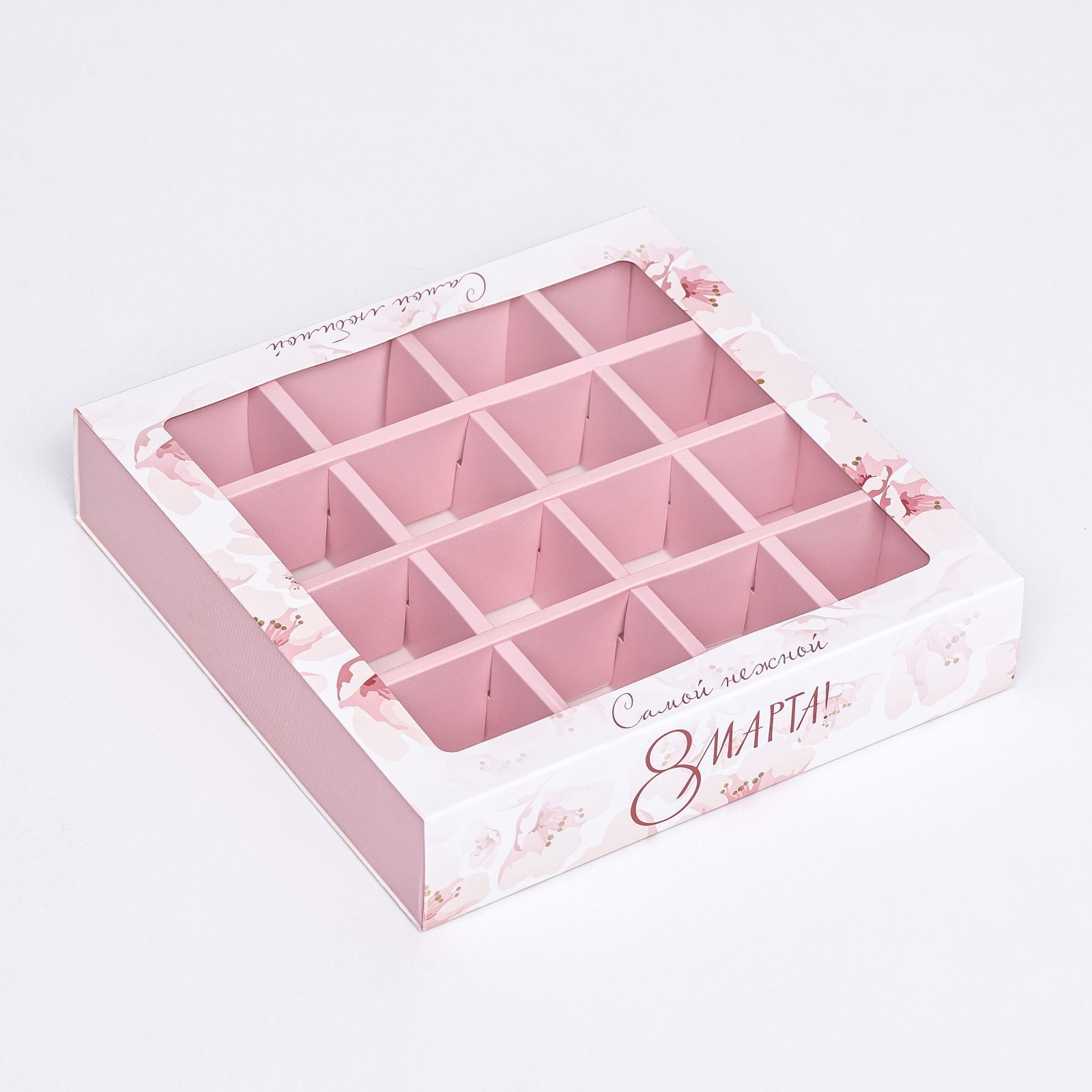 Коробка на 16 конфет — это отличный выбор для тех, кто любит сладости и заботится о их сохранности. Эта коробка выполнена из прочного картона, который обеспечивает надежную защиту конфет от повреждений и загрязнений. Прозрачная крышка из пластика позволяет видеть содержимое коробки, не открывая ее, что особенно удобно при транспортировке.