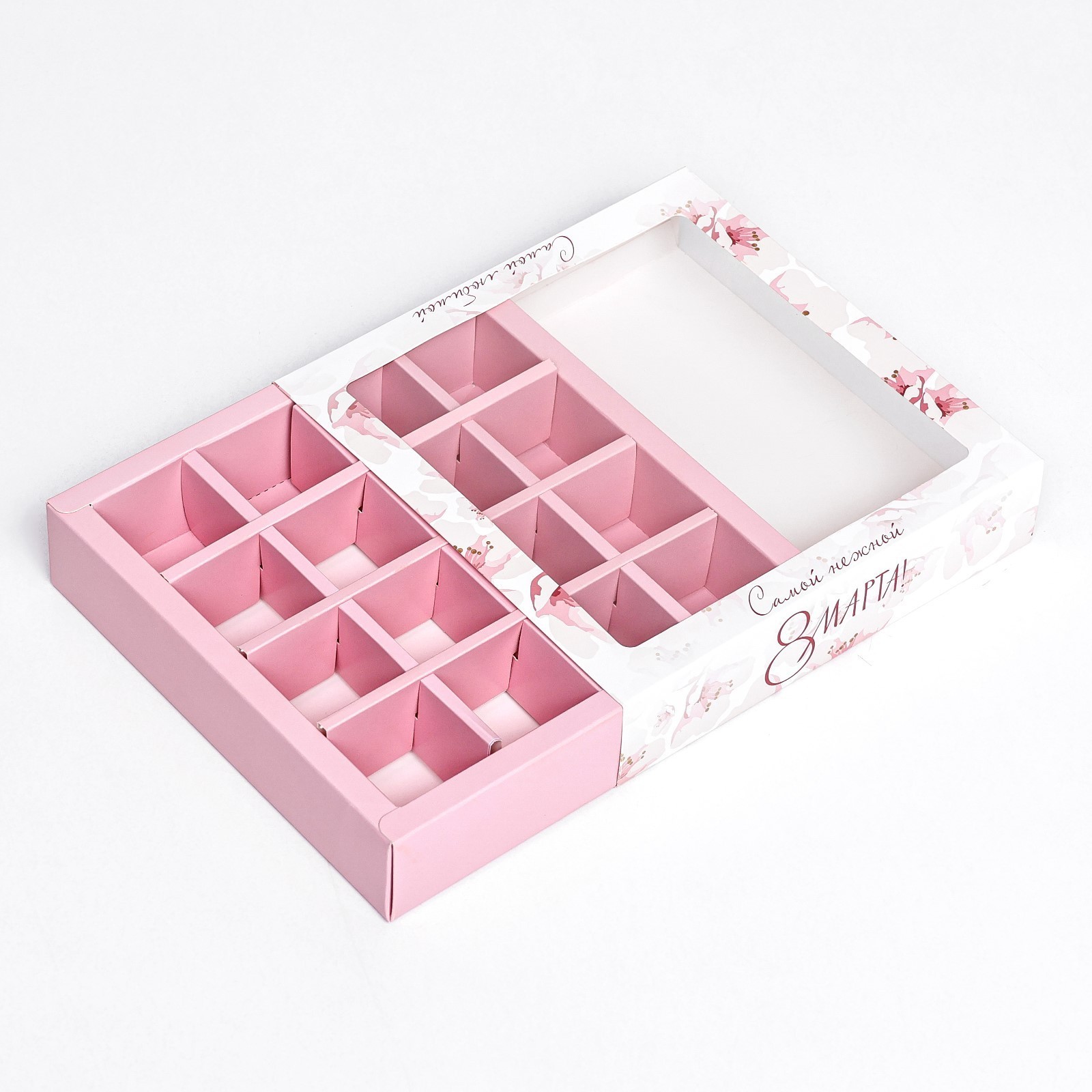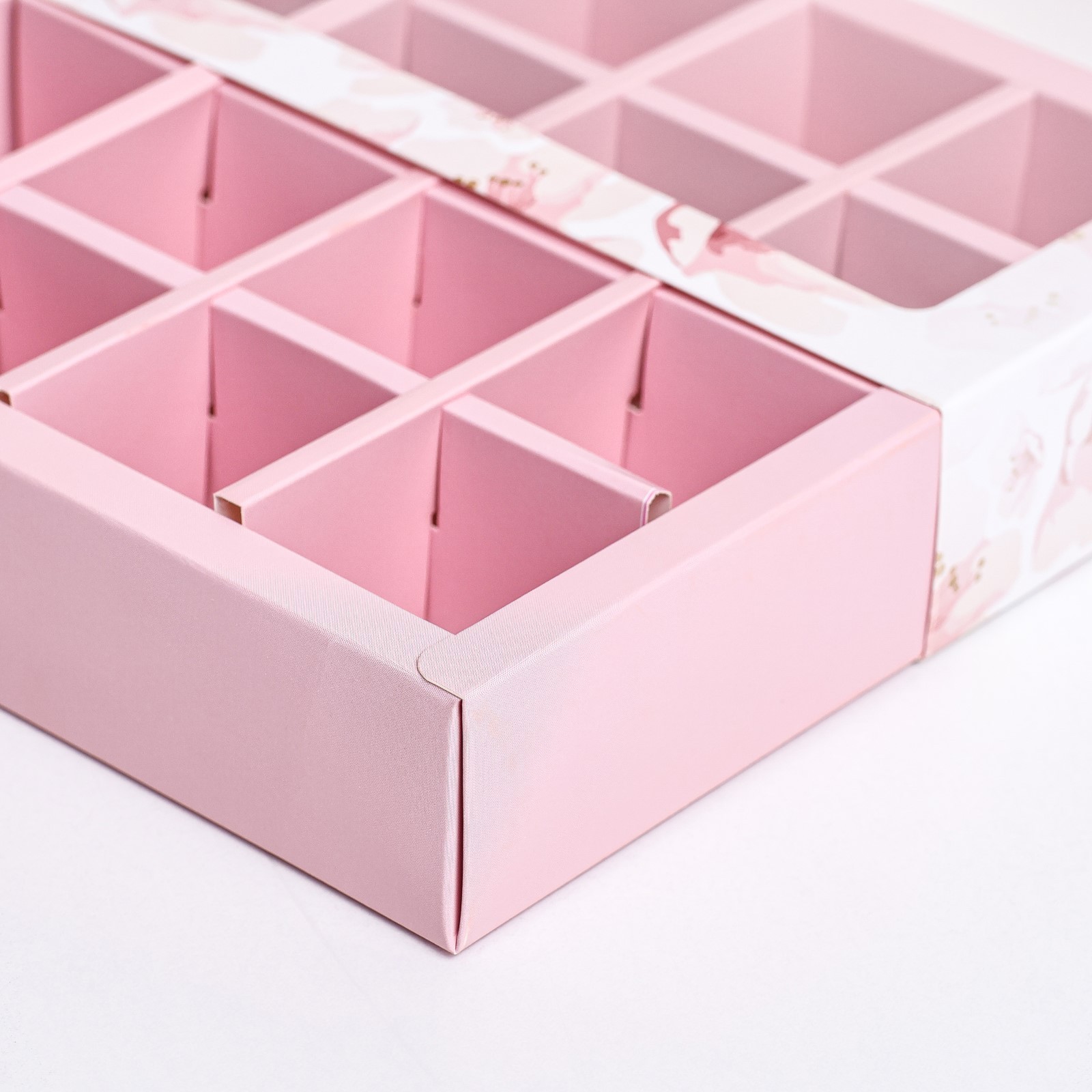 Дно и разделители коробки выполнены из плотного мелованного картона, что обеспечивает прочность и надежность.
