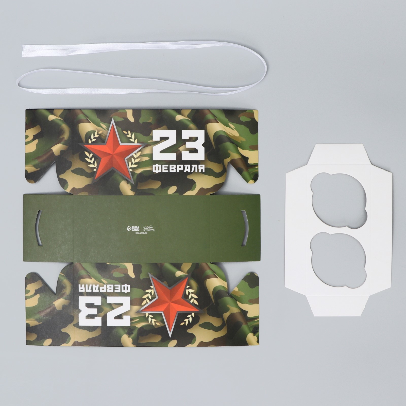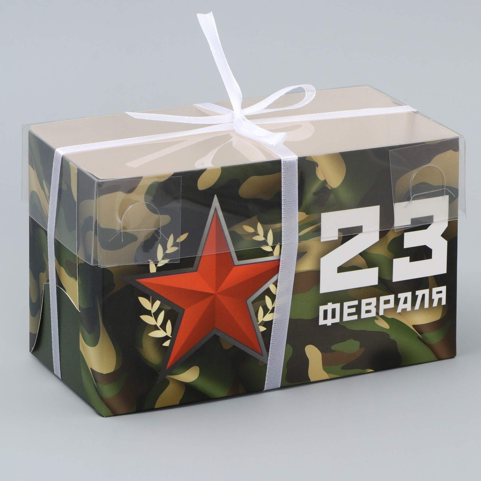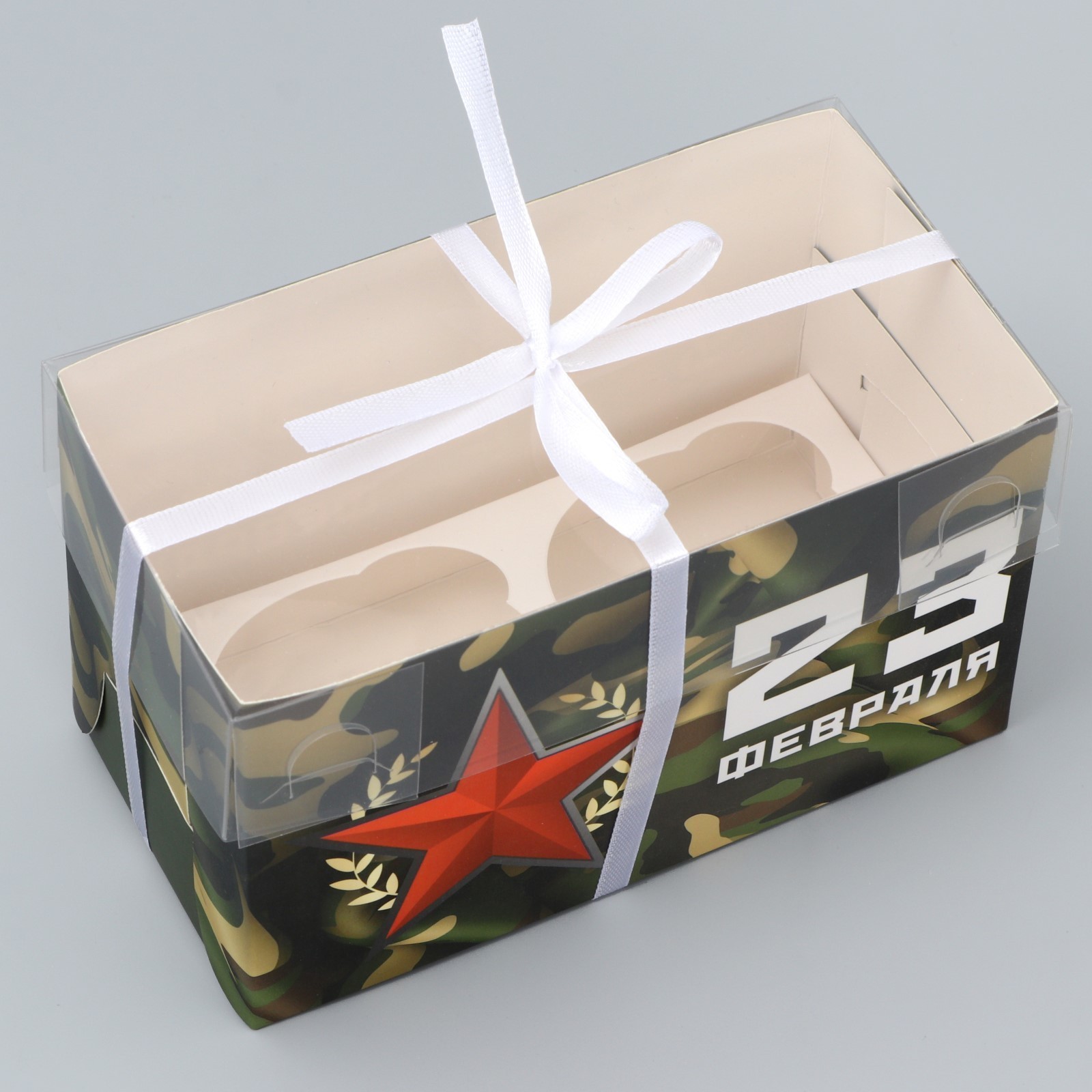 Упаковка на 2 капкейка с окном «Звезда. 23 февраля». Коробка подарочная универсальная предназначена: капкейков, кексов, пирожных и т. д. Изготовлена из плотного картона. Прекрасно подойдет для оформления подарка, и праздничного декора. Преимущества: плотный картон; оригинальное оформление; удобно при транспортировке. Для создания уникального и запоминающегося подарка рекомендуем использовать атласную ленту различных цветов.