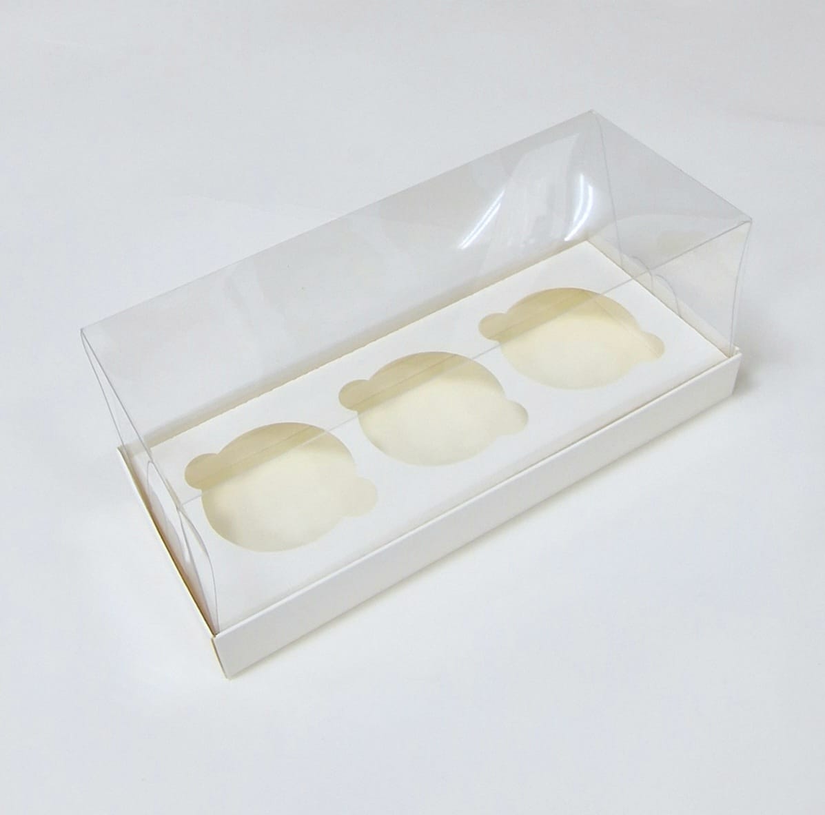 Коробка для капкейков на 3 штуки. В комплект входит вкладыш — ложемент для 3 капкейков. Коробка идеально подходит для перевозки и переноса различной выпечки, а также кондитерских изделий: капкейков, маффин, кексов, трайфлов, десертов, пирожных, конфет, сладостей и т. д. Прекрасно украсит праздничный и сладкий стол . Самосборная конструкция коробки позволит быстро ее собрать по линиям сгиба, без клея и дополнительных инструментов. Для создания уникального и запоминающегося подарка, рекомендуем использовать атласную ленту различных цветов.