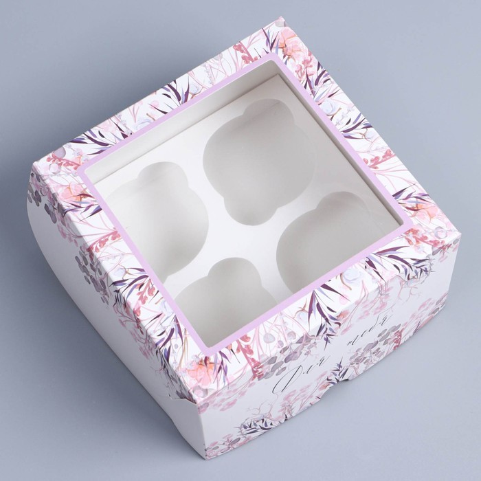 Вид упаковки — для капкейков. Цвет — разноцветный. Форма — квадратная. Размеры: 16*16*10 см.