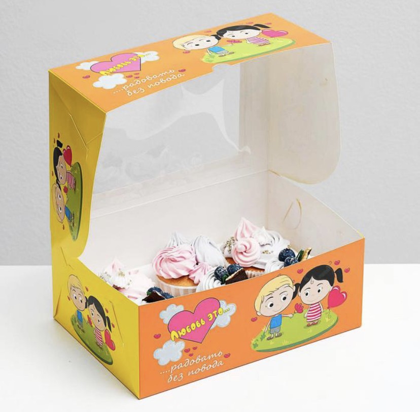 Тематическую коробочку «Любовь это…» можно использовать для капкейков, трайфлов, банкейков, зефира и других десертов