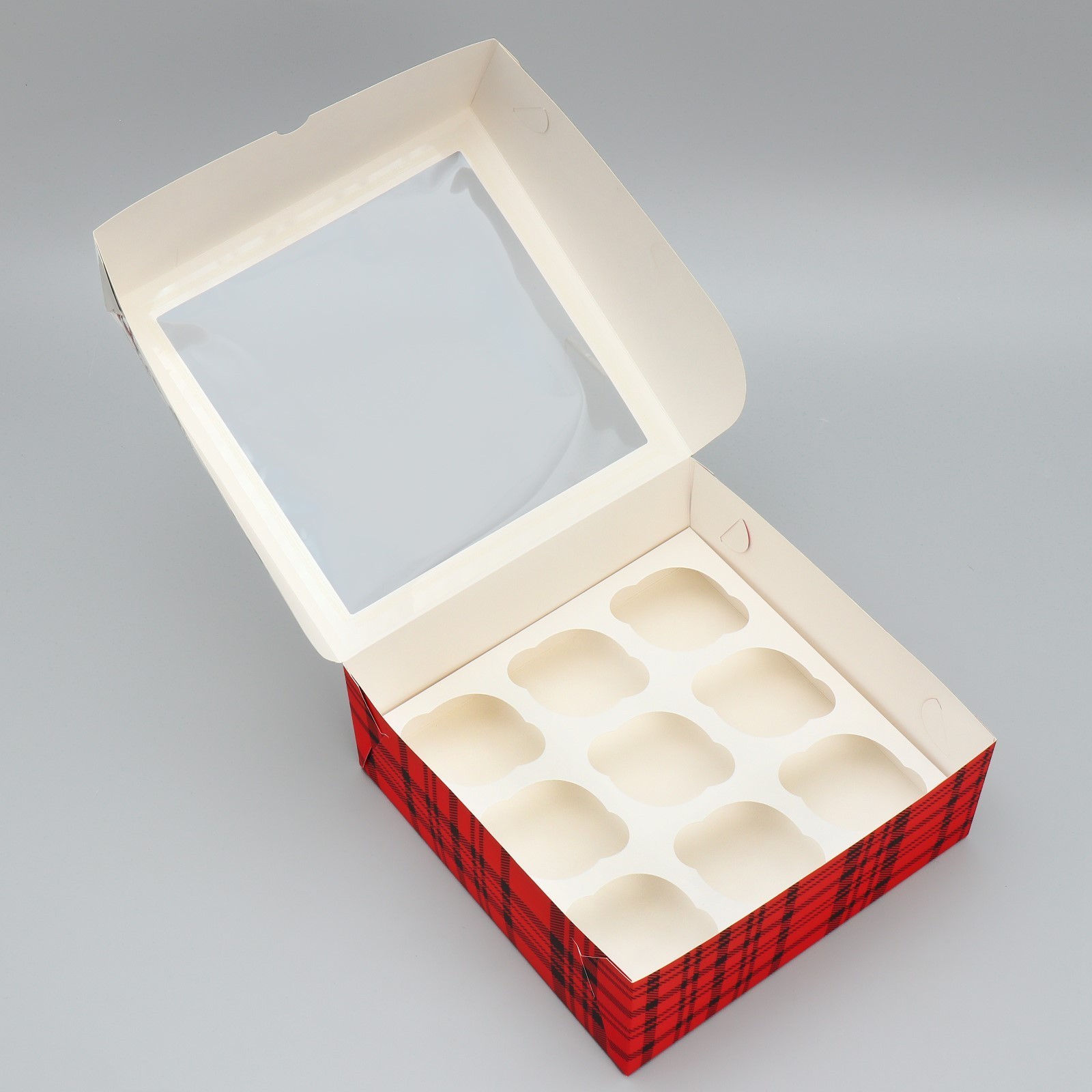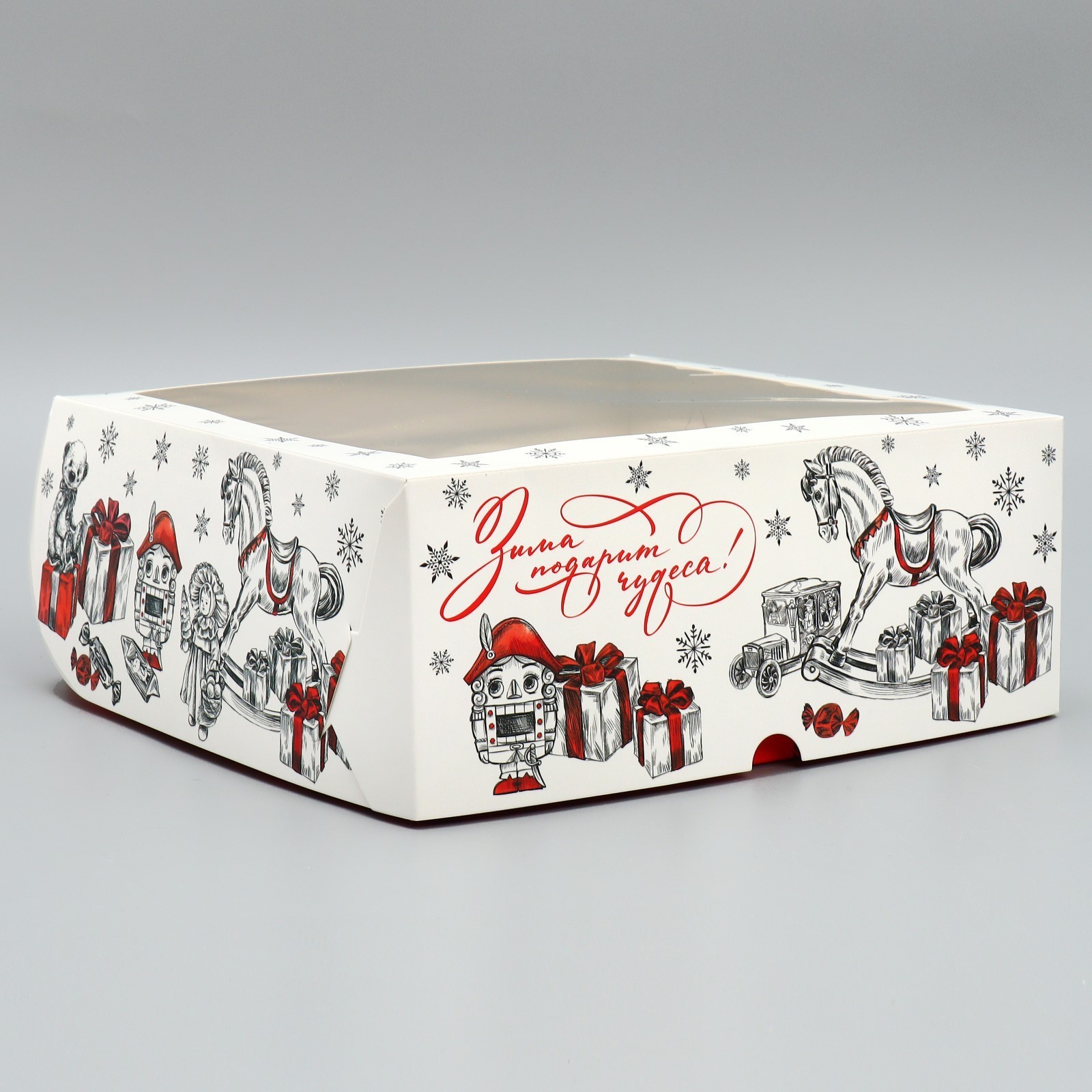 Упаковка на 9 капкейков с окном «Зима подарит чудеса». Коробка подарочная универсальная предназначена: капкейков, кексов, пирожных и т. д.