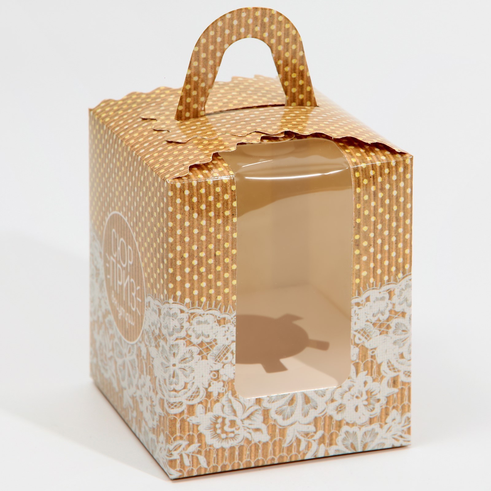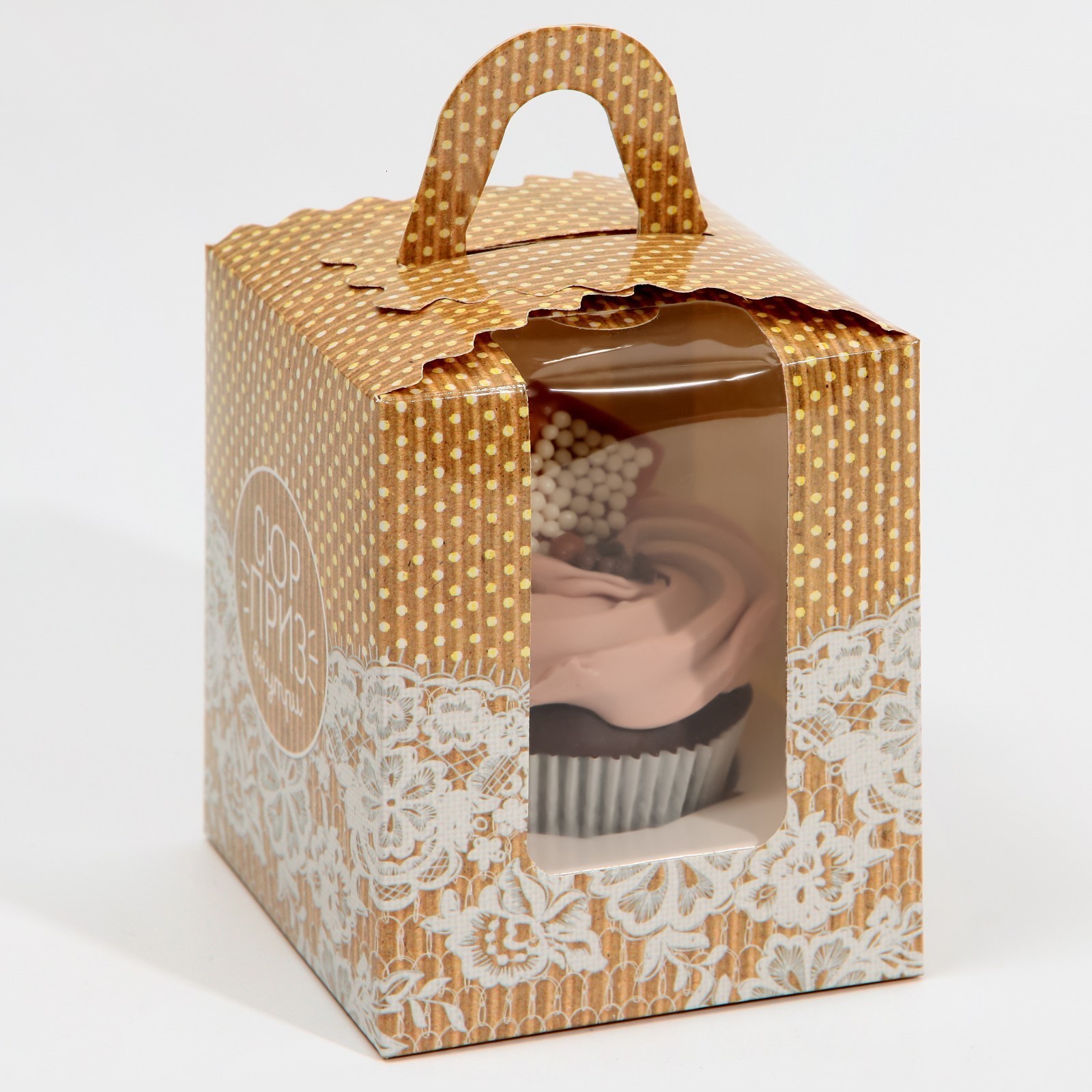 Складная коробка под один капкейк. Ложемент в комплекте. Материал— картон, Пластик