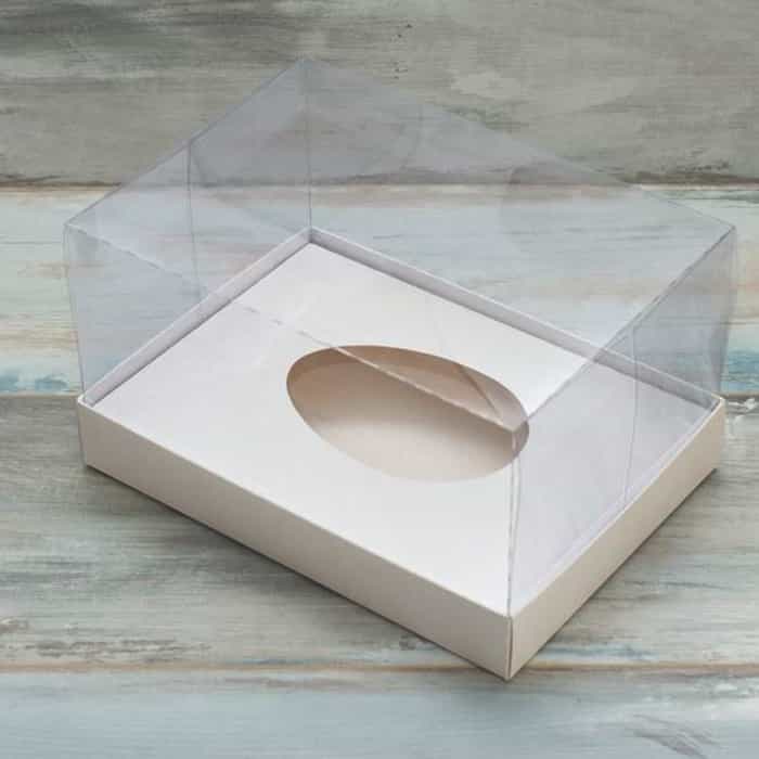 Коробка под половинку шоколадного яйца с пластиковой крышкой, 235*160*100 мм (белая).