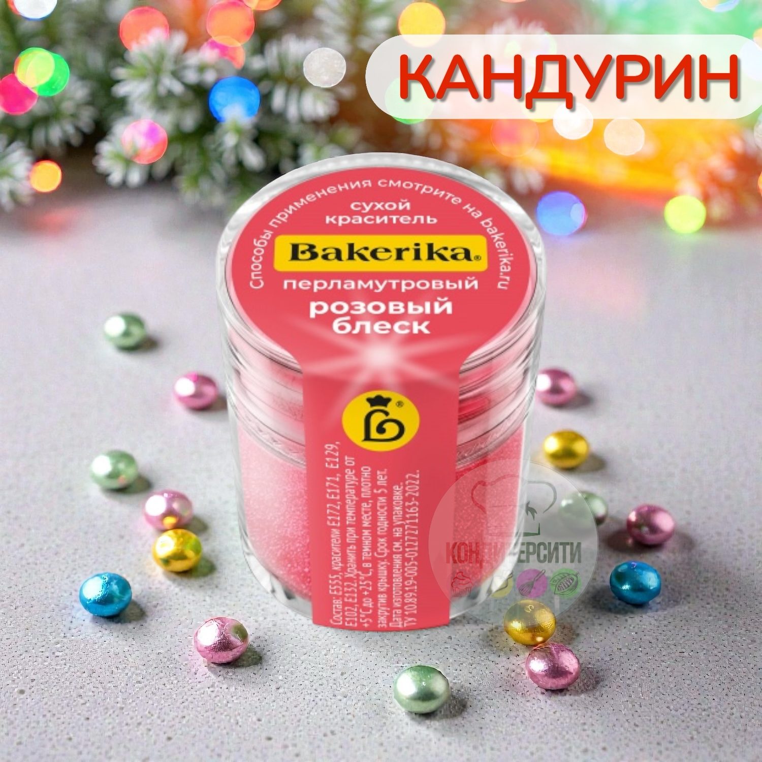 Кандурин – это биологическое соединение, которое получают из растительного или геологического сырья. Источником такого красителя является натуральная слюда. Он широко используется для окрашивания кондитерских изделий. С его помощью поверхность окрашиваемых продуктов приобретает золотистый, серебристый и другие блестящие цвета.