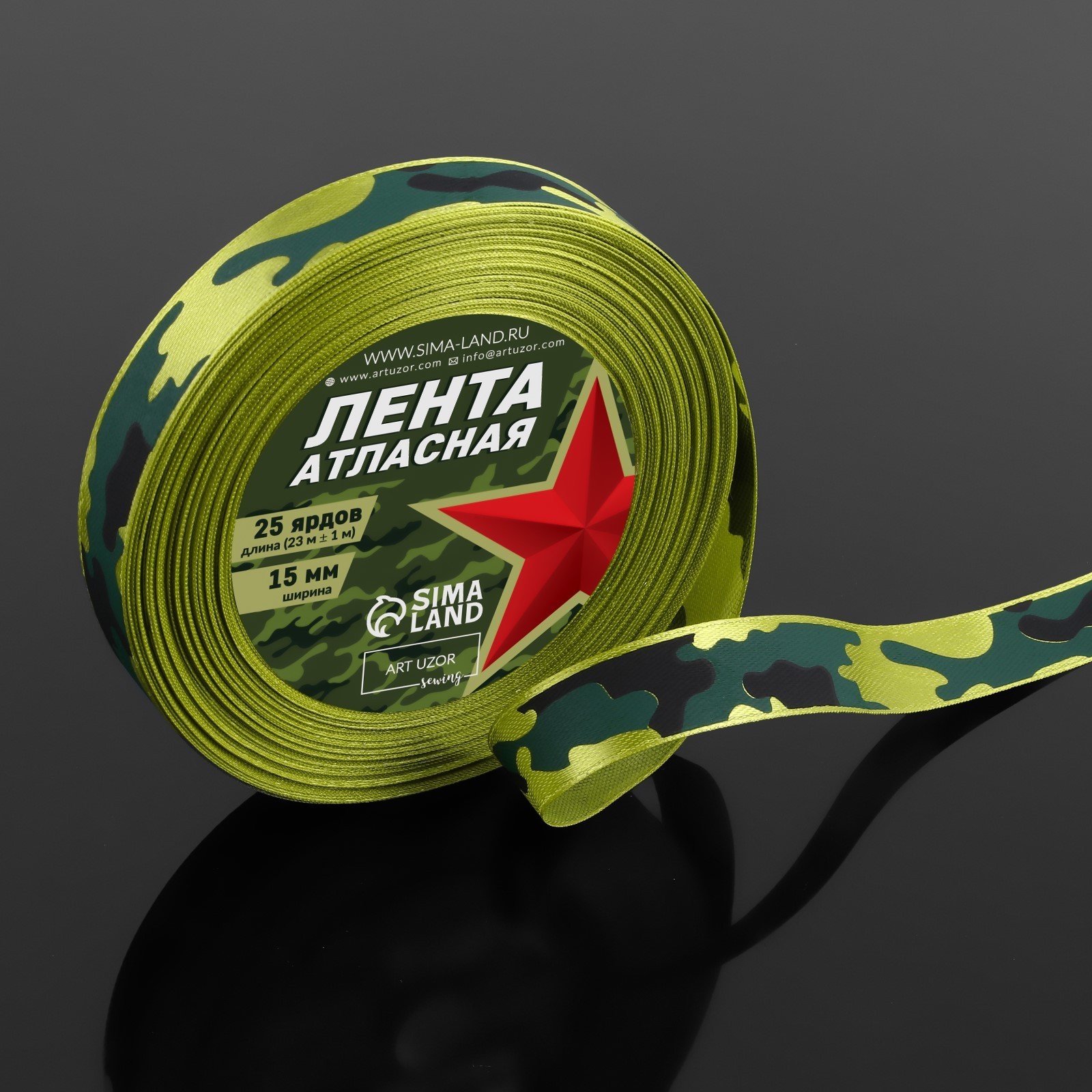 Лента атласная 1,5 см., 25 м., «Камуфляж зеленый»