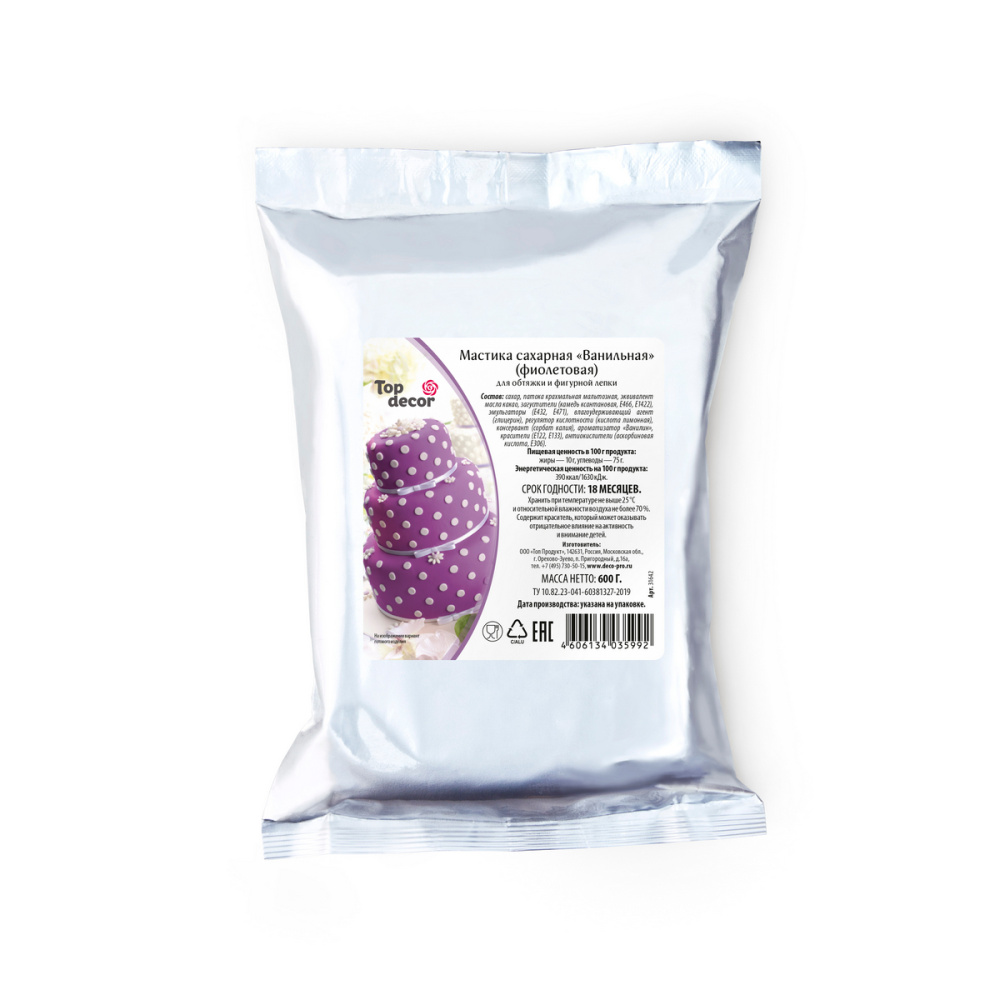 Мастика представляет собой сахарное тесто, которое используется для декорирования тортов и других кондитерских изделий. Подходит для обтяжки тортов и пирожных, а также для изготовления декора (фигурная лепка). Мастика хорошо окрашивается водорастворимыми красителями.