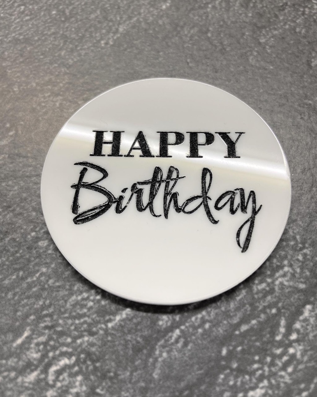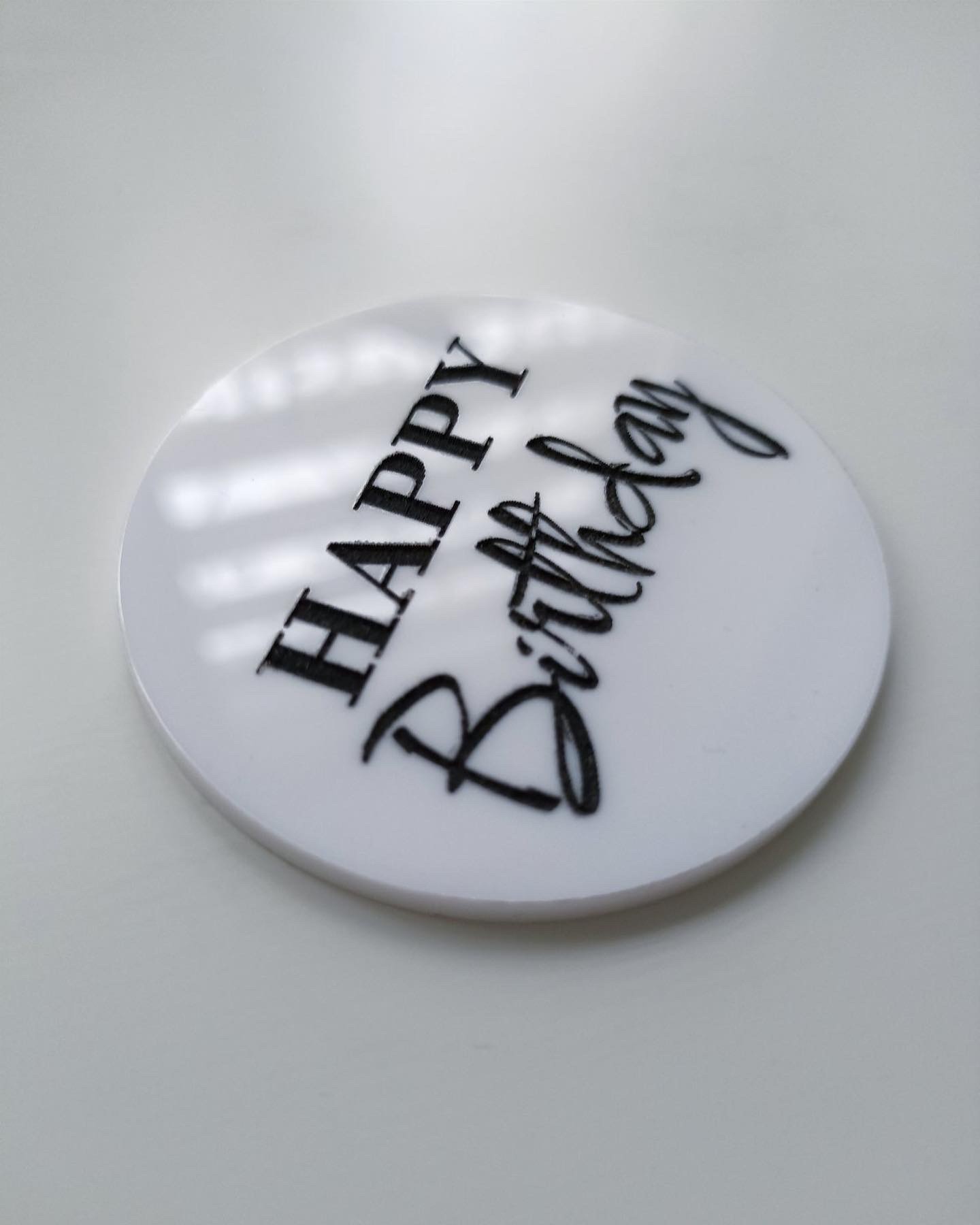 Медальон «Happy Birthday» из белого акрила, 6 см.