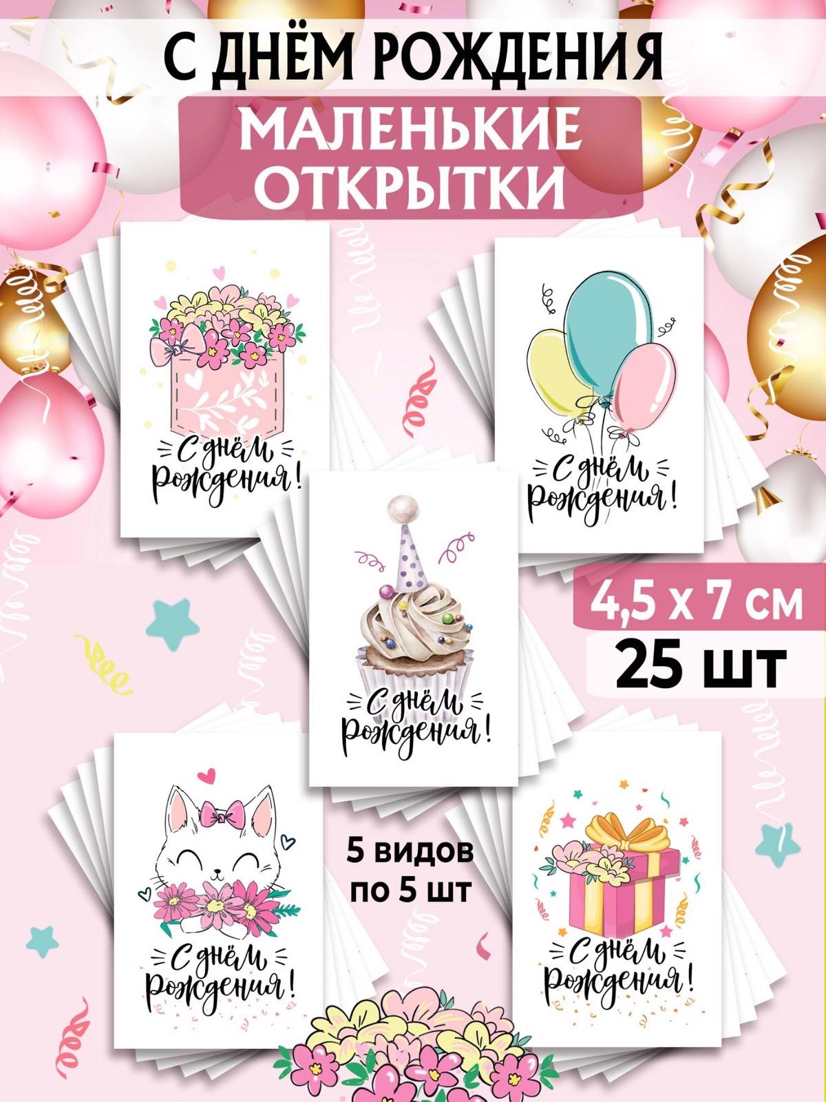 Мини-открытки «С Днем рождения!», набор 25 шт.