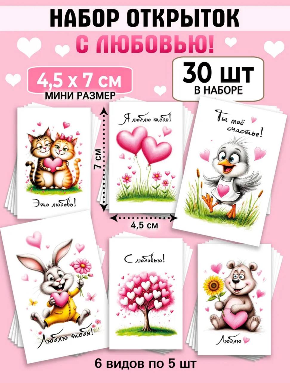 Мини-открытки «С любовью! Милые зверята», 4,5*7, набор 30 шт.